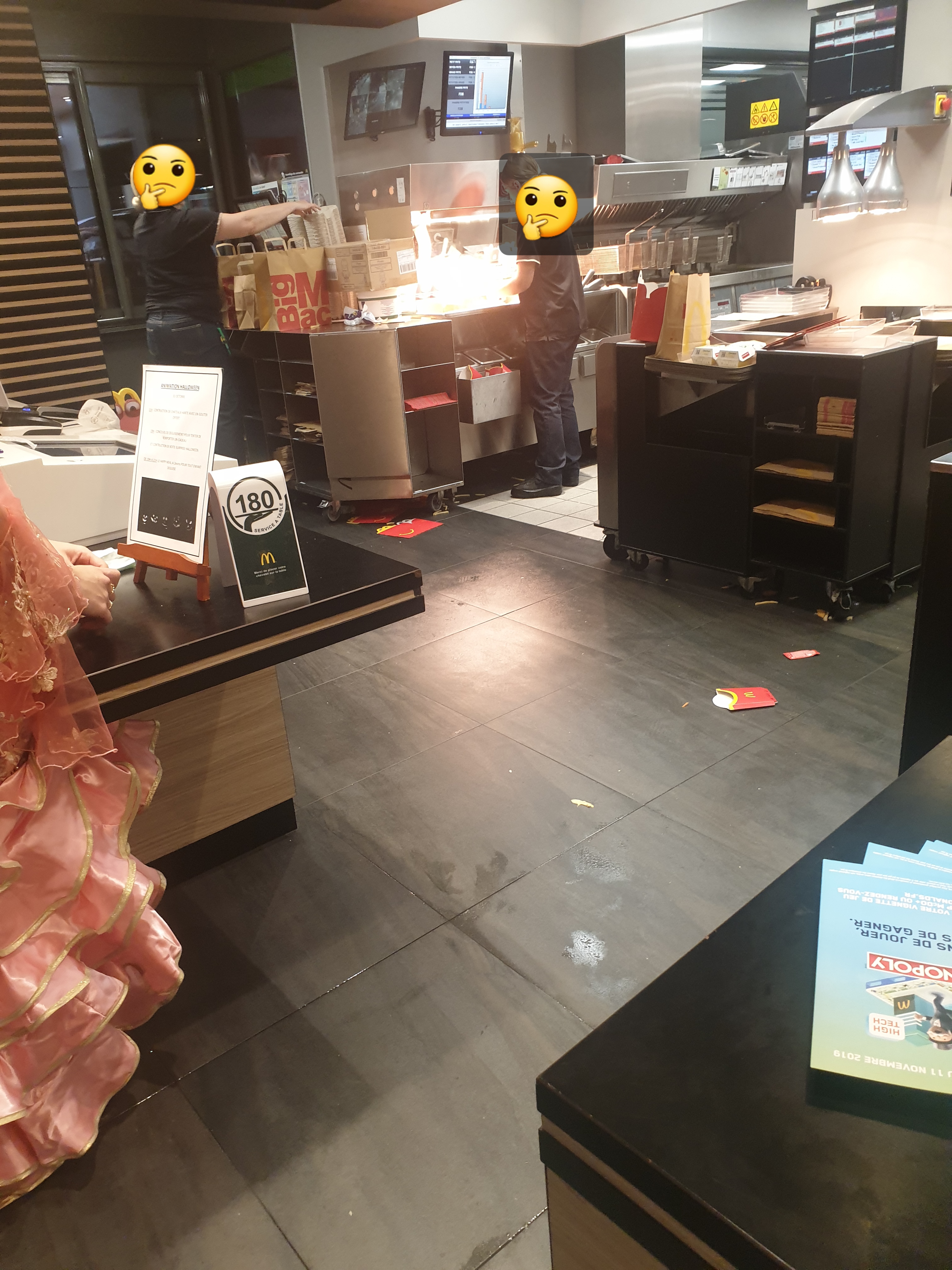 Pour avoir bosser dans la restauration rapide pendant des années, il faudrait expliquer le principe à certains/es employés/ées... ça souffle en tapotant le rebord du comptoir en regardant à droite puis à gauche les autres bosser et les clients attendre... vérifier que le personnel sache lire, ou à minima faire la différence entre un coca 0 (boisson commandée) et un Fanta (boisson servi) j'ai pas vérifié sur place déjà longue attente pour réceptionner la commande alors qu'il y avait très peu de clients... mais si c'était qu'une fois ça irait mais chez McDo c'est récurrent soit il manque des choses ou alors tu as ce que tu n'as pas commandé.