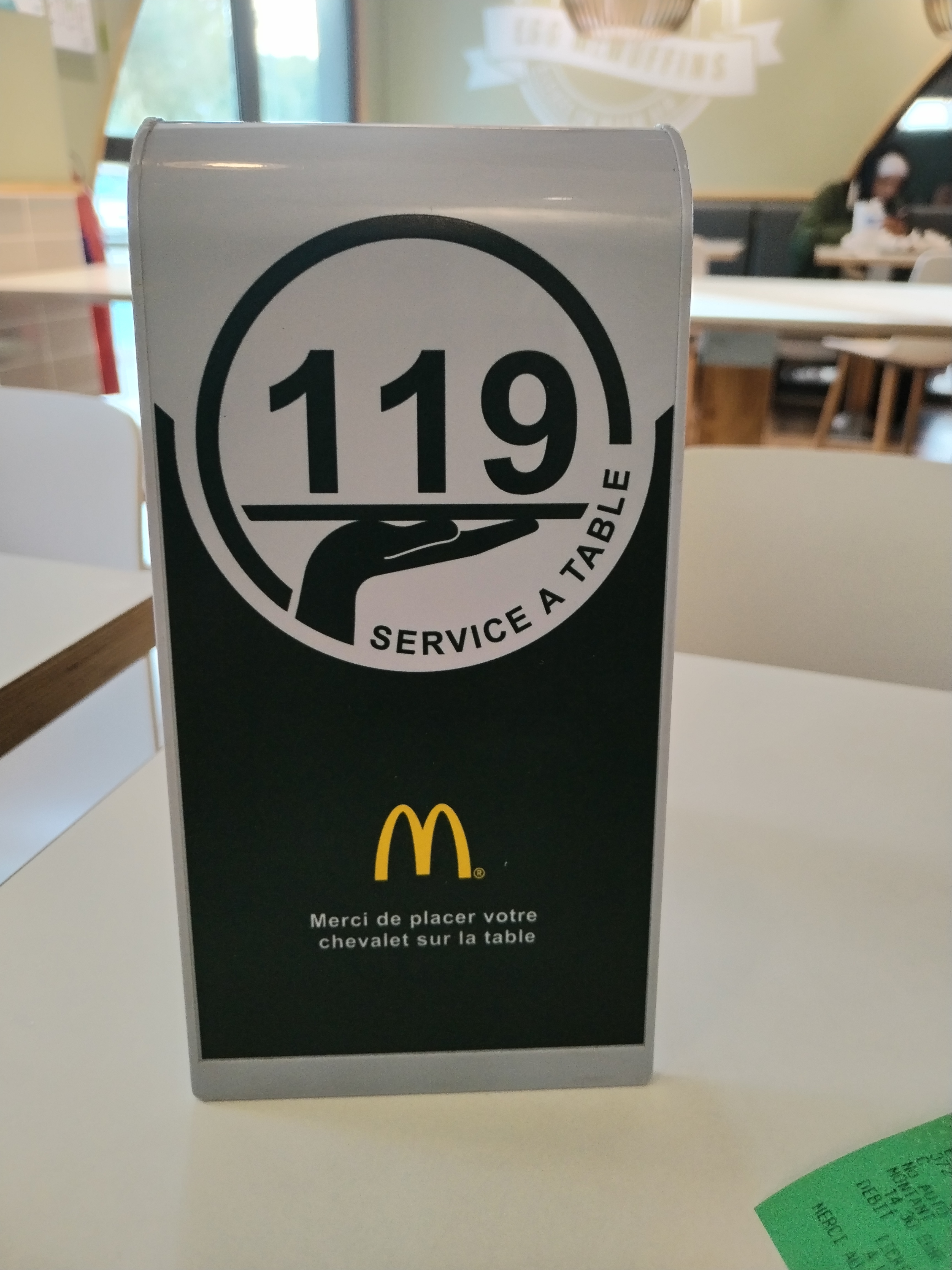 Nous étions une bande de copains et copines vers 20 h 30, on a bien mangé chaud, et en plus la dame super sympa nous a vendu des chaussettes Mc Do trop rigolo. Tables rangées et propres par elle et c'est l'as du ménage cette Daronne elle n'a pas arrêté. Bravo pour le patron de faire travailler des mamans comme elle. On reviendra promis Mc do.