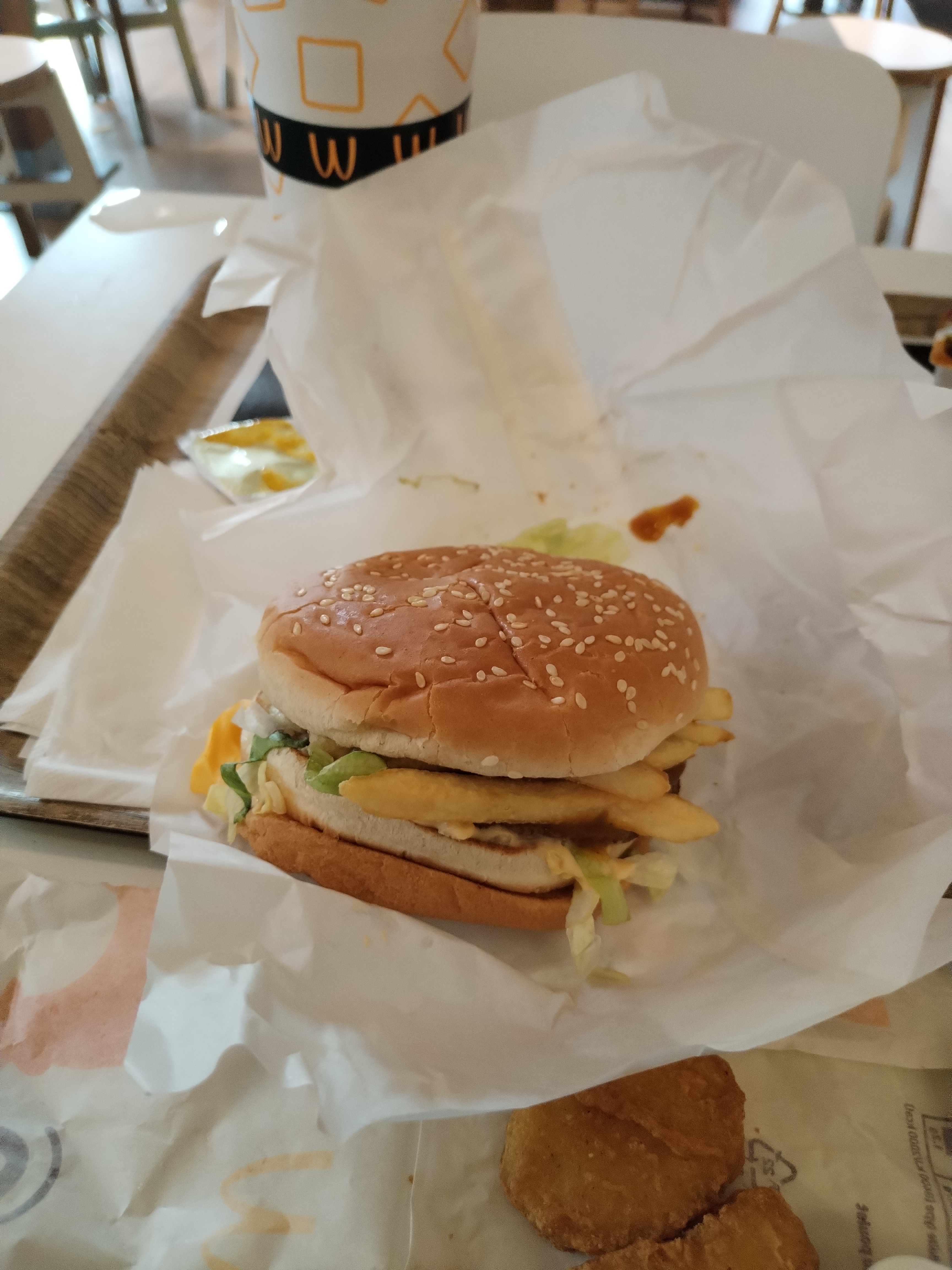 Tout était bien le seul problème c'était mon wrap qui j'avais impression de daté du 1er guerre mondiale.. si dur que je pouvais casser la tête à qqlun... malheureusement il a fini à la poubelle et mon retour dans cette McDonald's très peu probable..