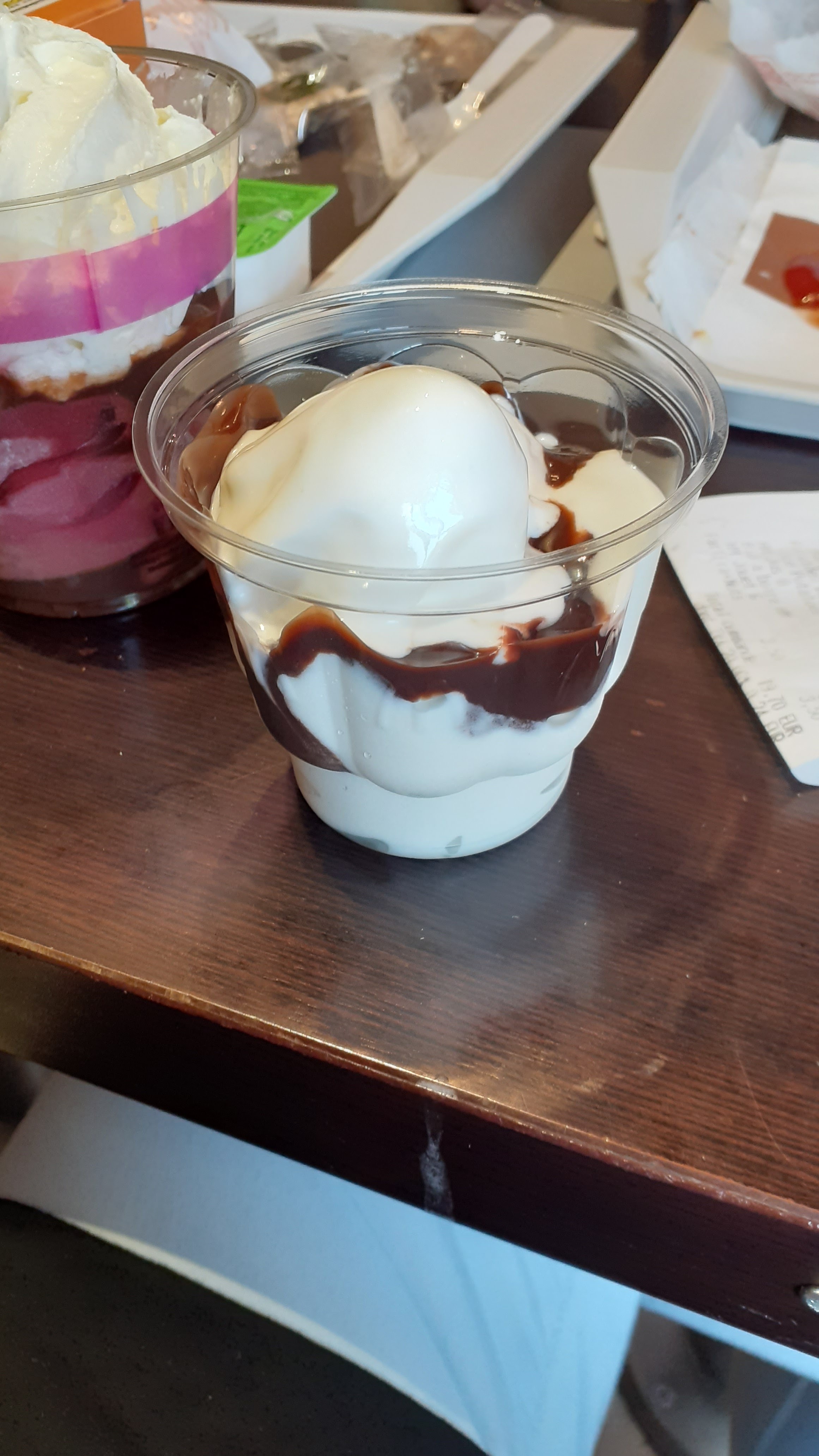 Il manquait le boisson et le sandwich n'était pas le bon. Presque pas de chocolat sur le sundae et peu de Chantilly sur le parfait Limite du vol !