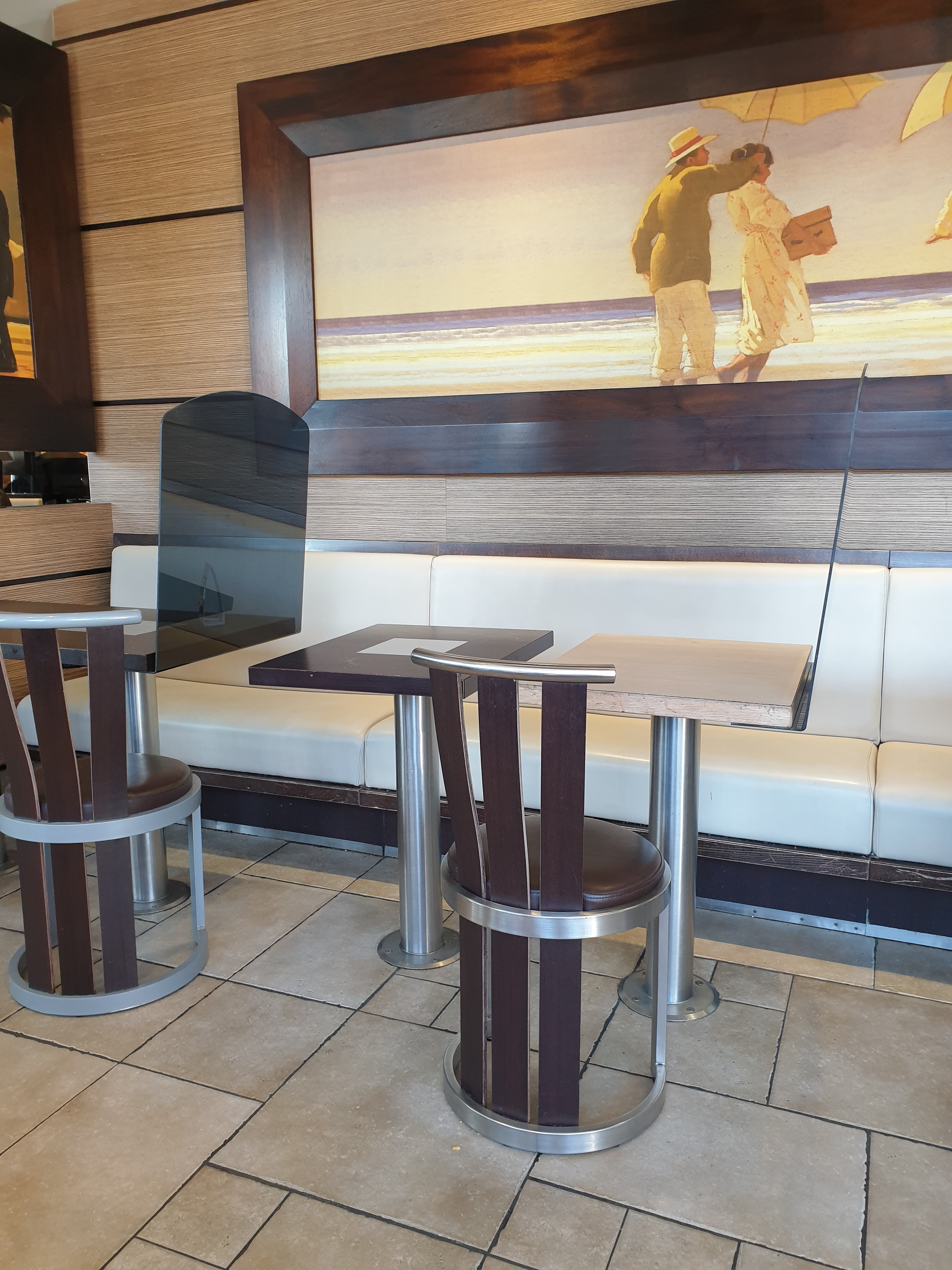 Tables et sol très sale. Lorsqu on m a apporté la commande j ai dû demander à ce qu on nettoie ma table pleine de traces,, collante avec des miettes. L employé n aurait même pas nettoyé la table d initiative. D ailleurs il ne s est même pas excusé( même s il n y est pour rien ) ni même dit un seul mot!! . Inadmissible surtout en période de covid.