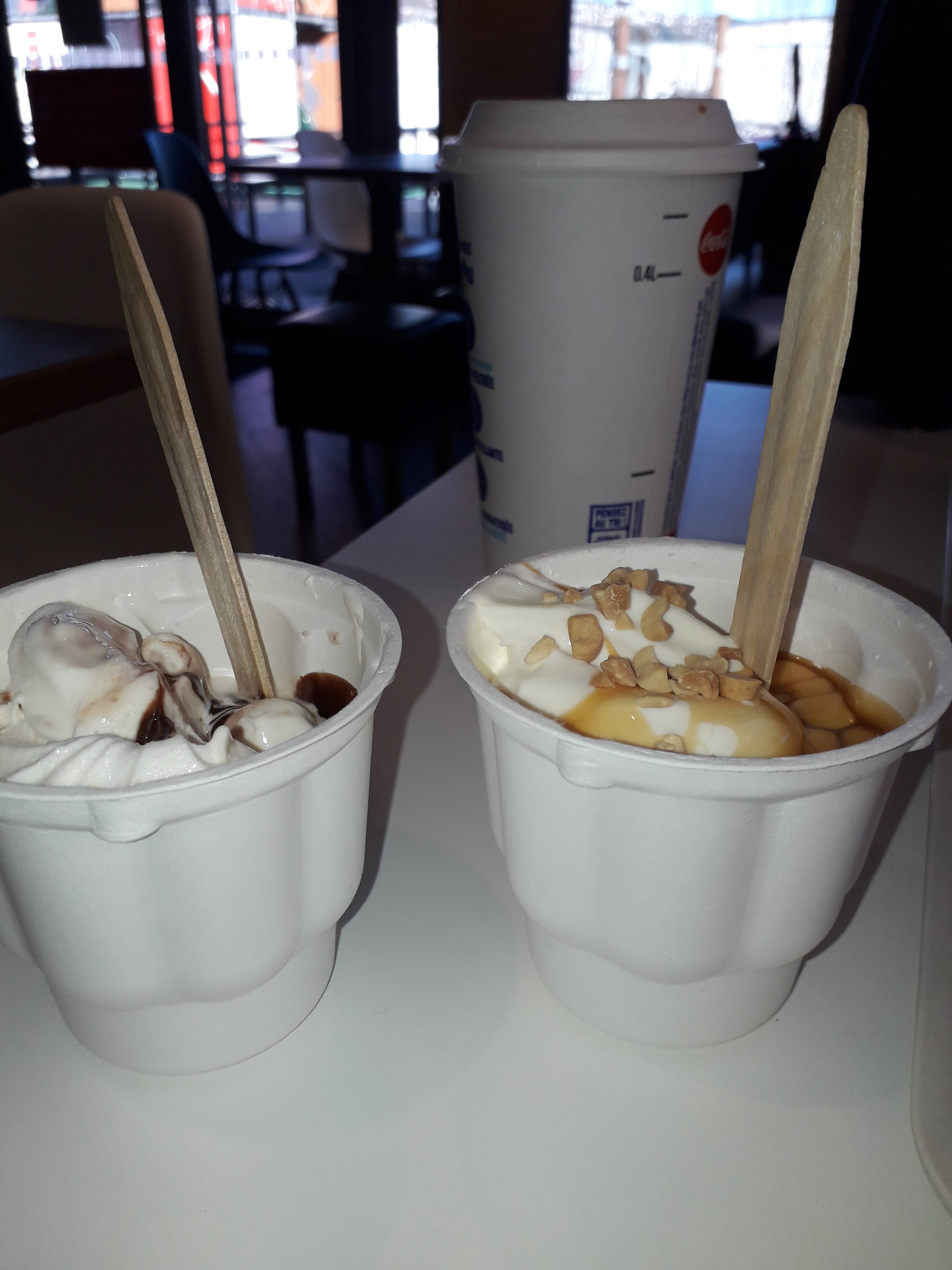 Bonjour, passage ce jour vers 13h30, après notre menu, nous avons pris un Sunday ( voir photo) , est-il normal de servir de servir des glaces à moitié faite! Plein d'air en plus en dessous. D'après ma fille, la personne qui faisait les glaces était énervée.