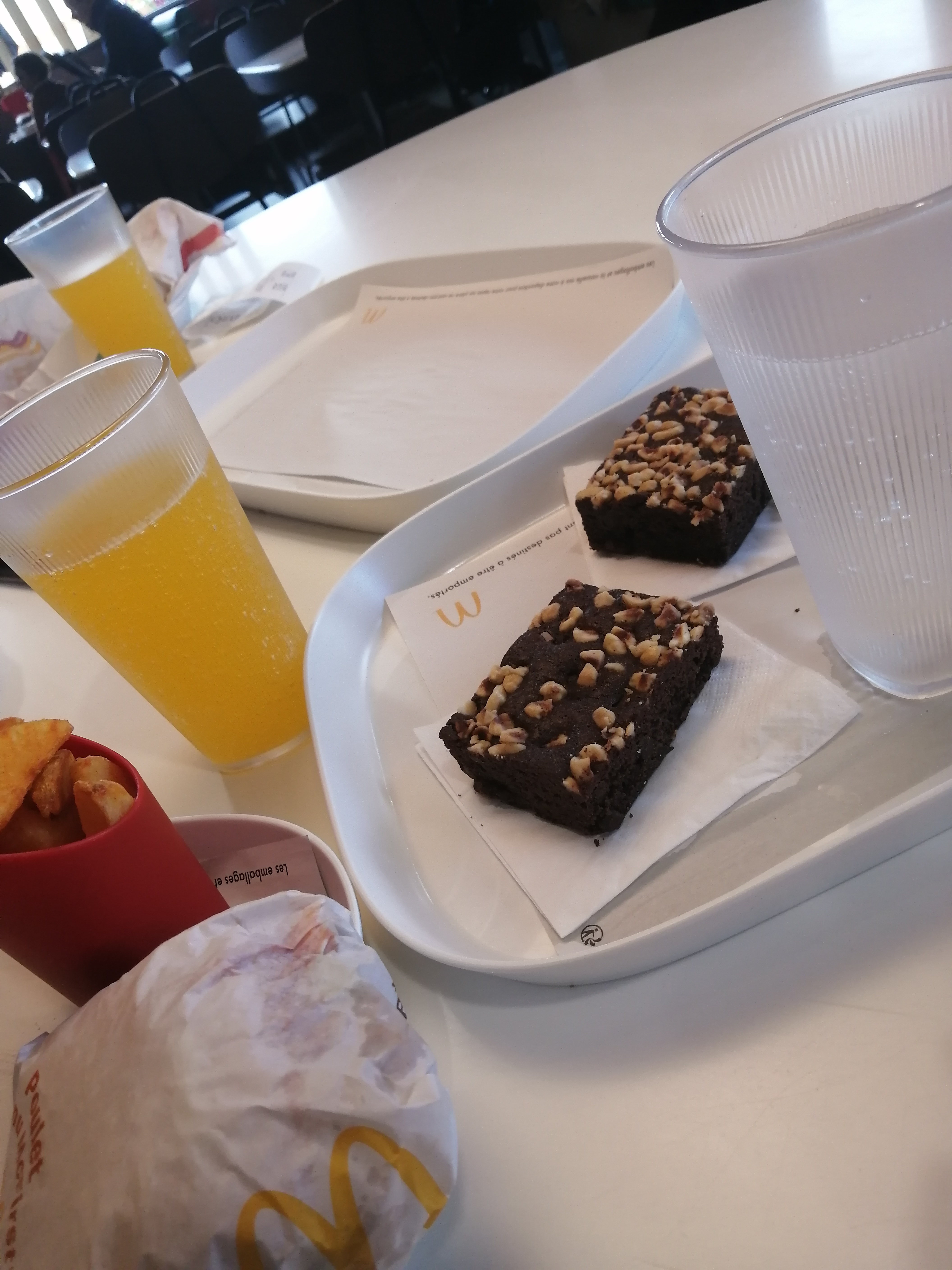 Passé au drive. Frites oubliées donc on a du descendre pour aller les chercher. Mac Deluxe écrasé dans le sac et wrap pas cuit (collé au en papier). Très moyen...