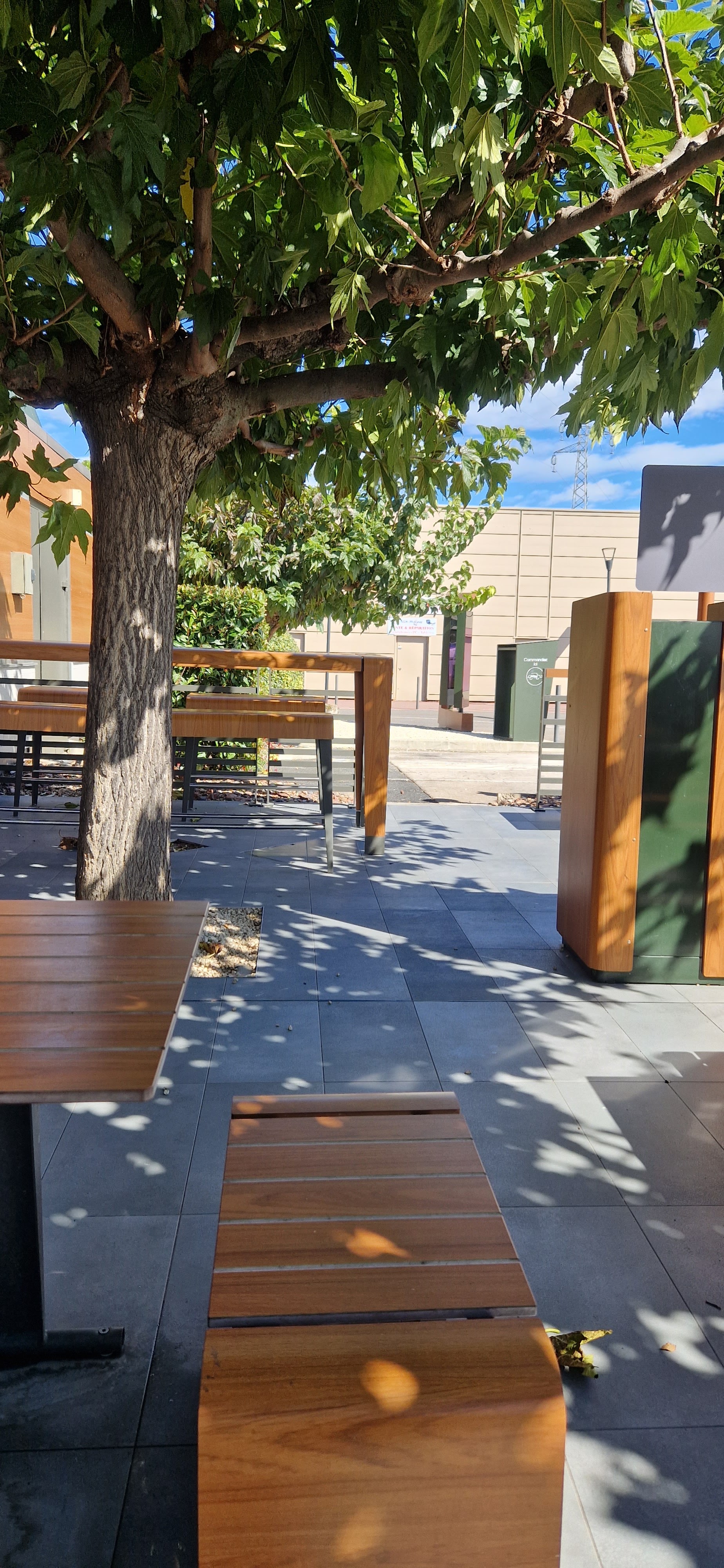 Beau petit Macdonald. J'ai bien profité d'une table dehors à l'ombre des mûriers.