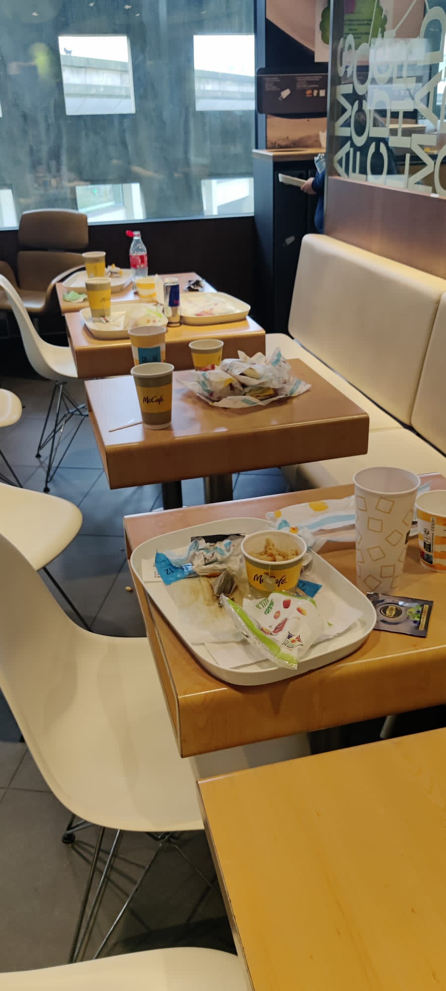 La commande a été faite sur une machine et à fonctionne. Les produits sont bons! Mais à table on nous a déposé qu’une partie de la commande. J’ai dû courir après le serveur qui avait emporté notre chevalet et qui m’a orienté vers son responsable. Pas d’excuses. On m a envoyé au Mac Café récupérer le reste de ma commande. Voilà ! Pas top! Le restaurant est propre et un agent nettoie régulièrement par terre. En revanche, les gens qui dorment sur place la tête sur la table , c’est glauque !
