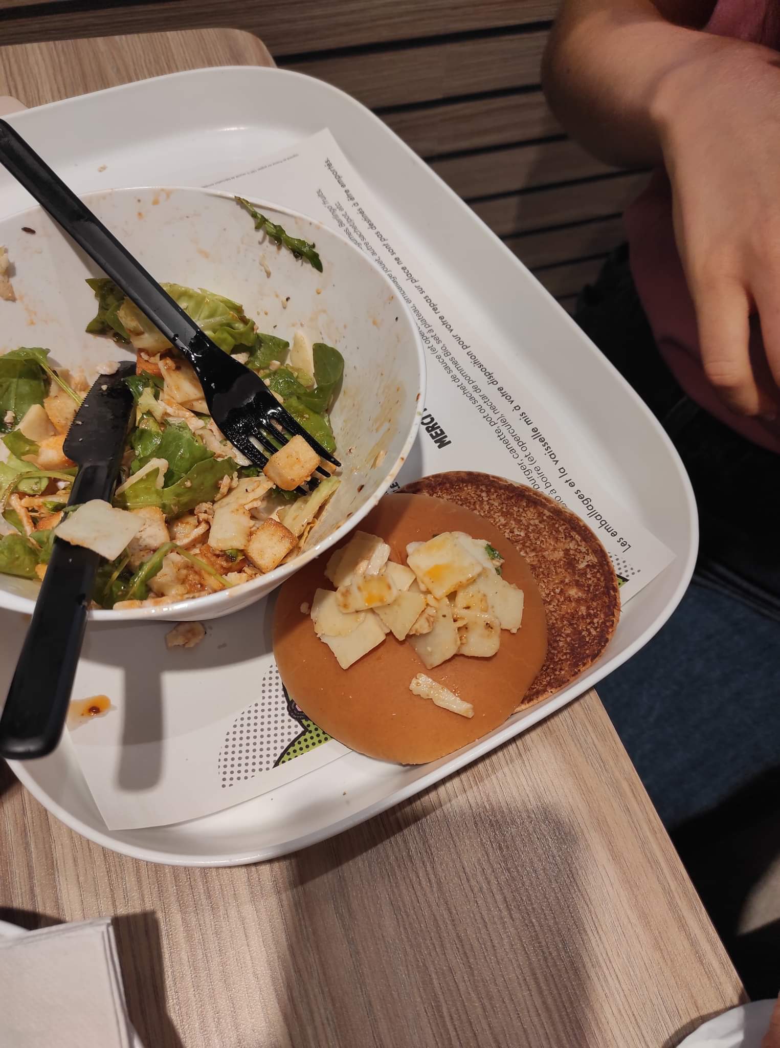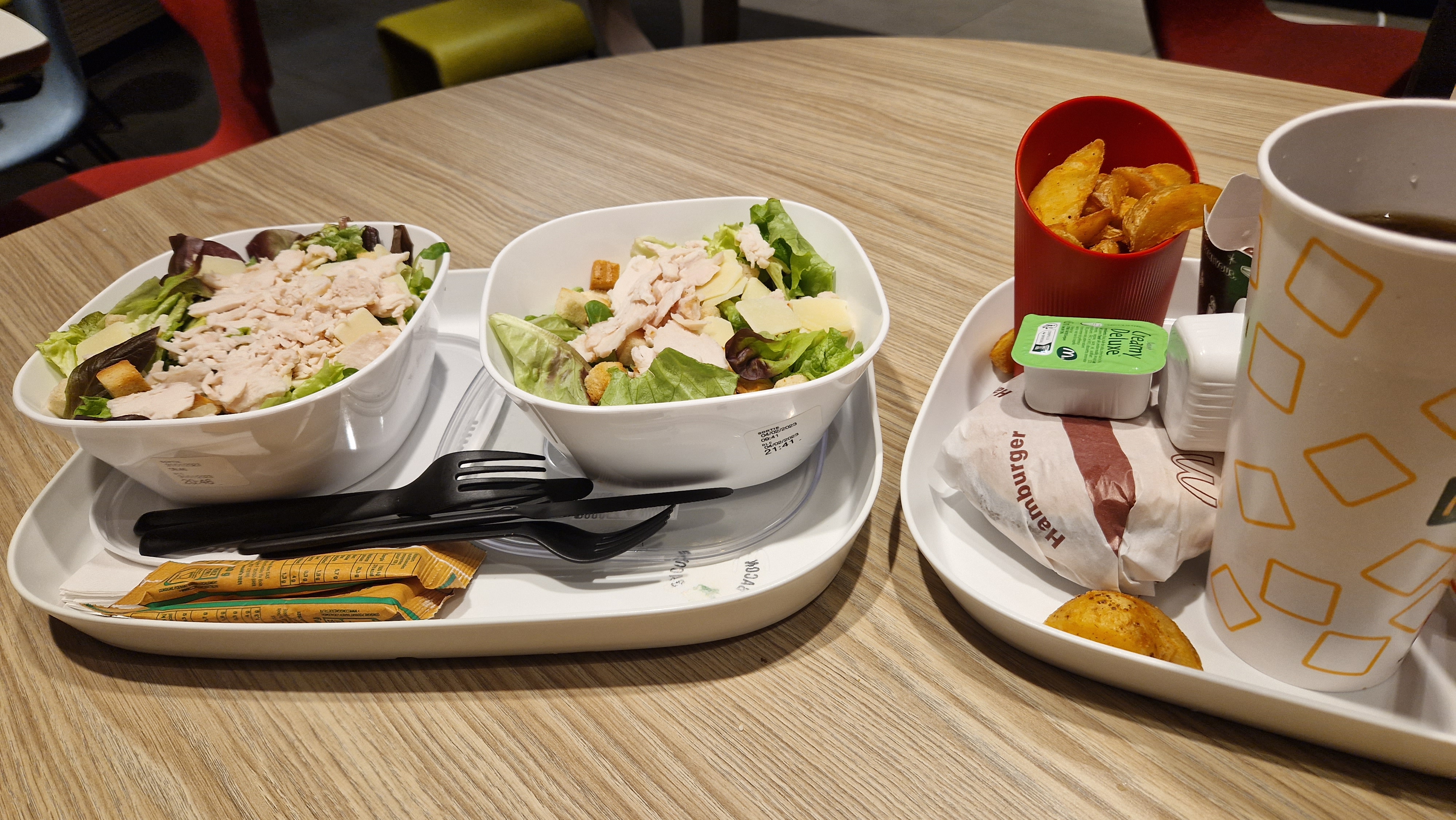 Satisfait, tout ce qu'on peut attendre d'un McDonald's. Les couverts et nouveaux emballages réutilisables sont propres.
