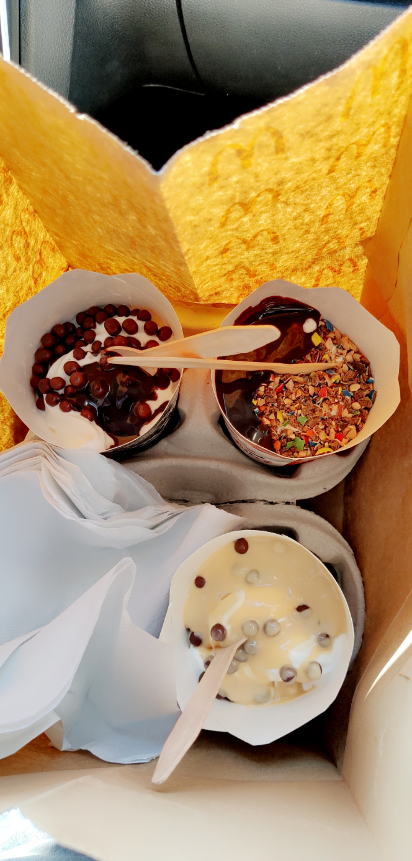 Je suis passé au drive, je n'ai pas vérifié la commande parce que c'est quand même leur travail de s'assurer qu'il ne manque rien... Eh ben pour la seconde fois, une fois à la maison, je me rends compte que le MC flurry n'est pas là ! A 4€ la glace, c'est inadmissible ! Après un appel, on m'a demandé mes coordonnées pour m'envoyer un bon pour en avoir un gratuit (celui que j'ai payé en fait...)