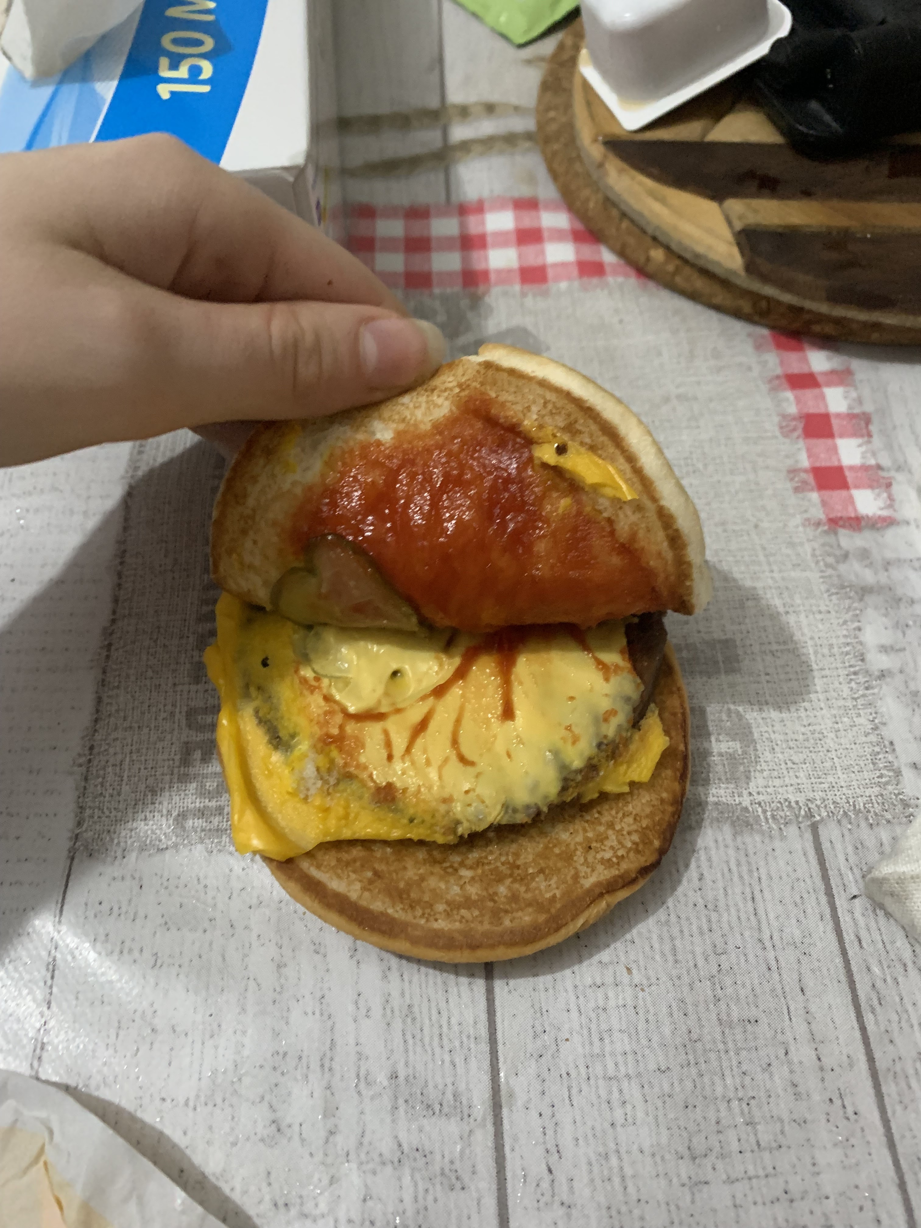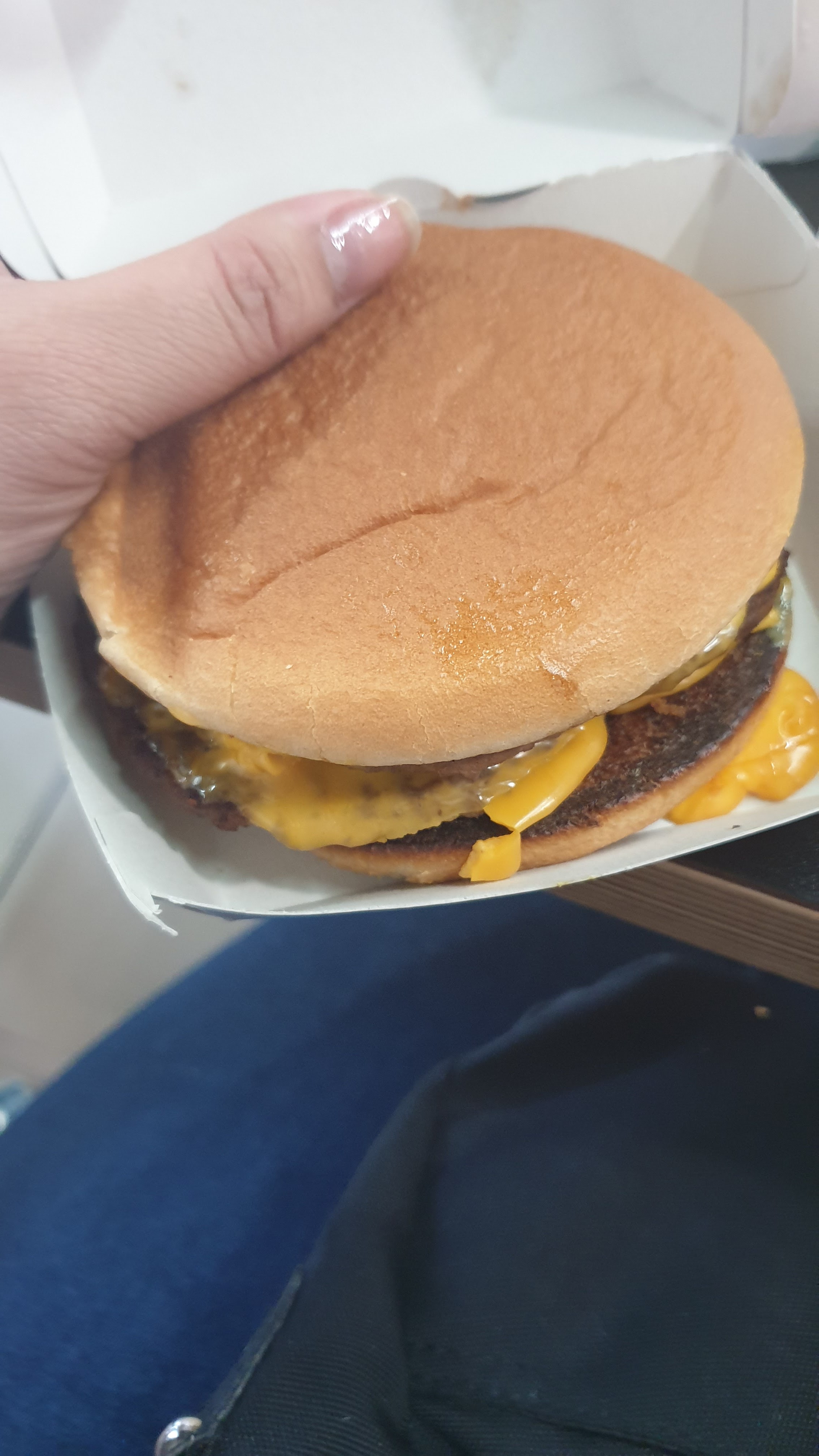 Commande faite via uber eat. Le menu blue cheese and bacon était lamentable: le burger ne faisait absolument pas envie contrairement a la publicité et nous cherchons encore le bacon. La sauce patatoes était absente. Et le dessert du happy meal n’était pas le bon: yaourt à boire au lieu du babybel…