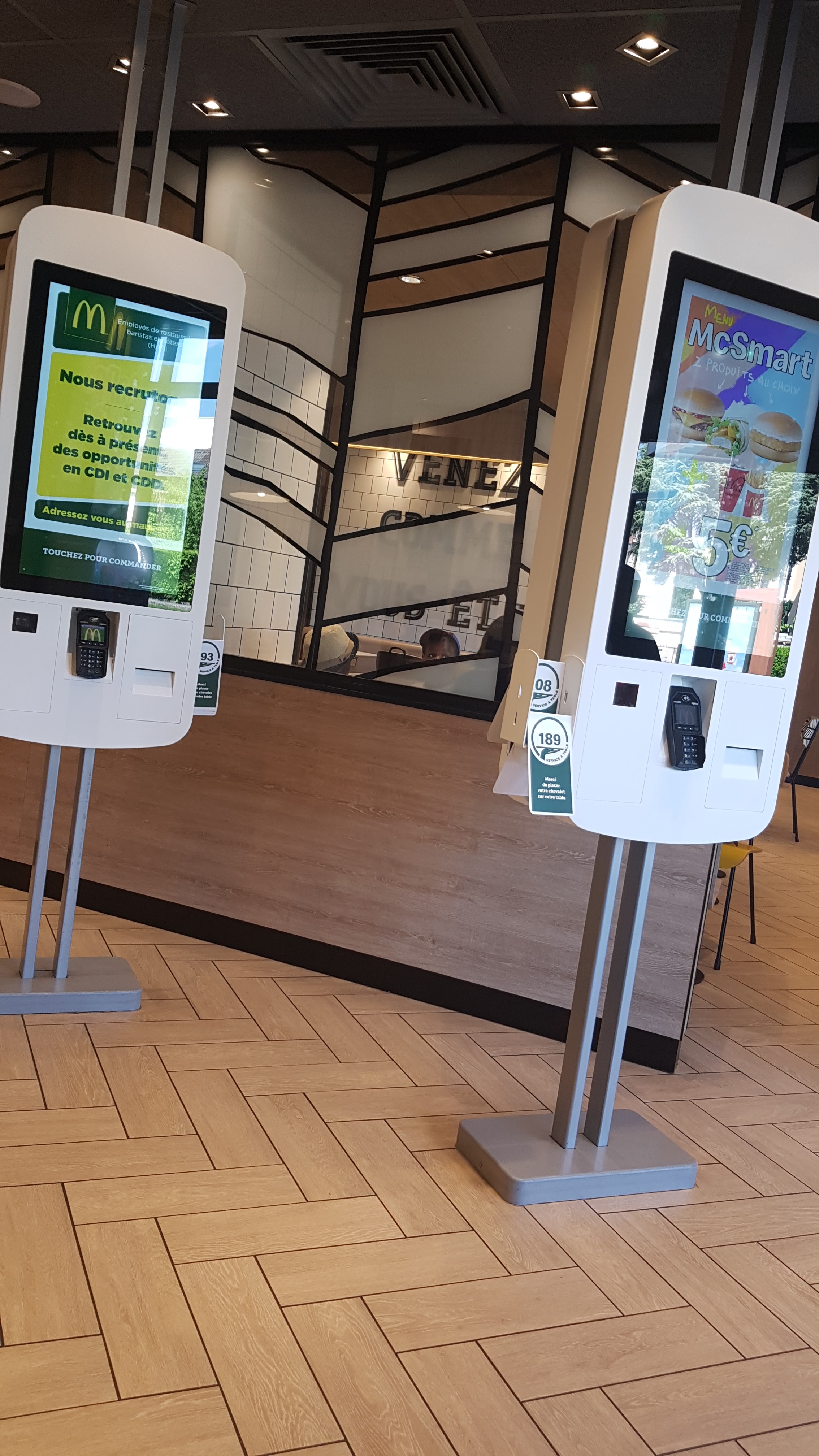 Mcdo très jolie et super pour la rénovation mais ce que je trouve dommage c’est la qualité de la propreté de la salle , arrive à 19h toutes les tables étaient sales , peut être penser à nettoyer les tables de temps en temps , car toutes les tables étaient sales donc difficile de se poser pour manger ce qui nous amènent a choisir la moins sales . Même si je sais que c’est au client d’être un peu plus propre d’un autre côté. Mais cela serait bien de faire quelques vérification de temps en temps de la propreté de la salle . Après cela pousse malgré tout à la réflexion en se demandant si l’hygiène de la salle n’est pas tenu alors on pourrait se demander comment ça se passe en cuisine .