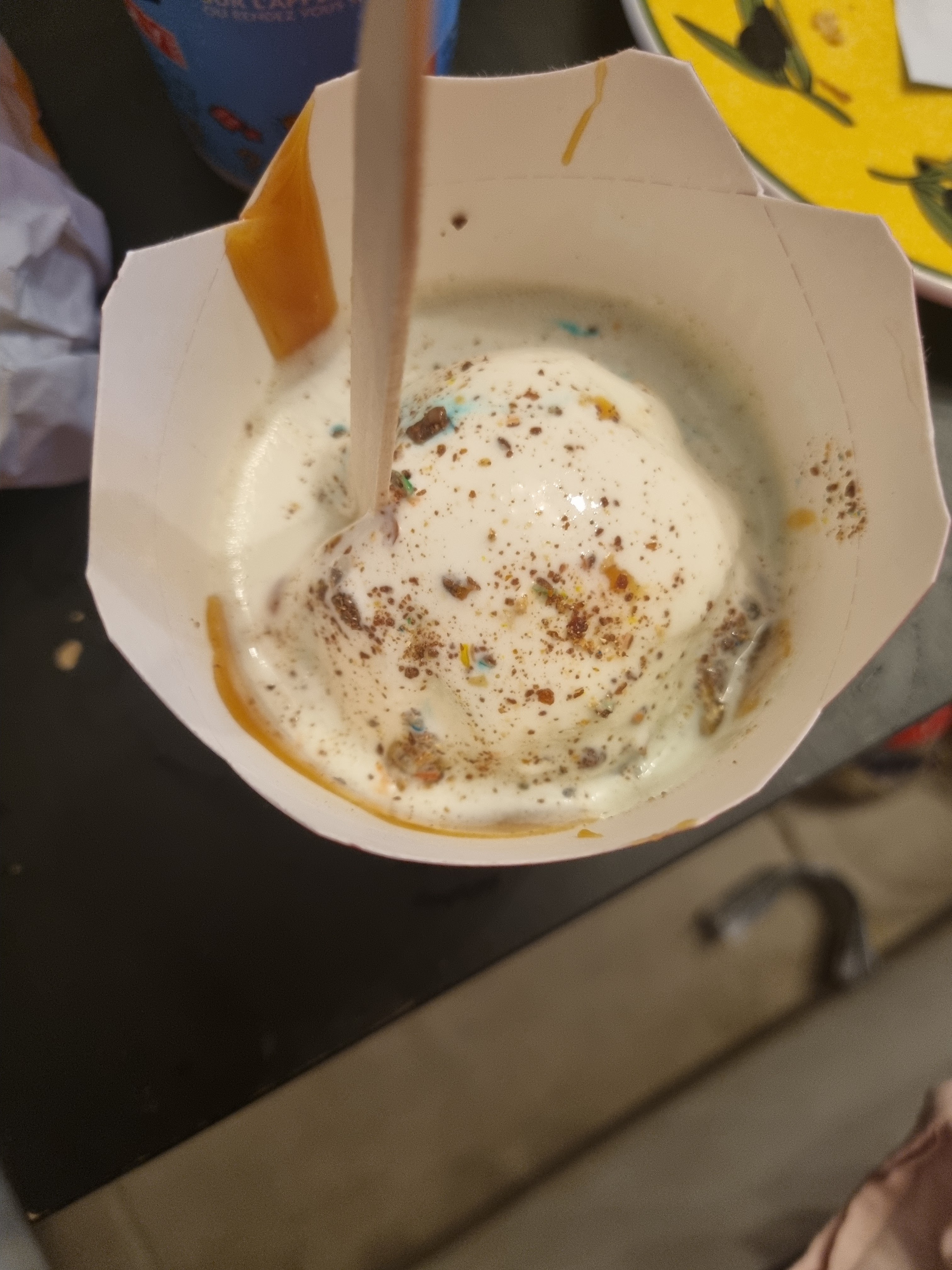 Il manque toujours quelque chose dans la commande sa deviens vraiment insupportable Et la je viens de commander un Mac flurry m&ms et couli caramel je vous laisse admiré la photo .. encore une fois très déçu !!!