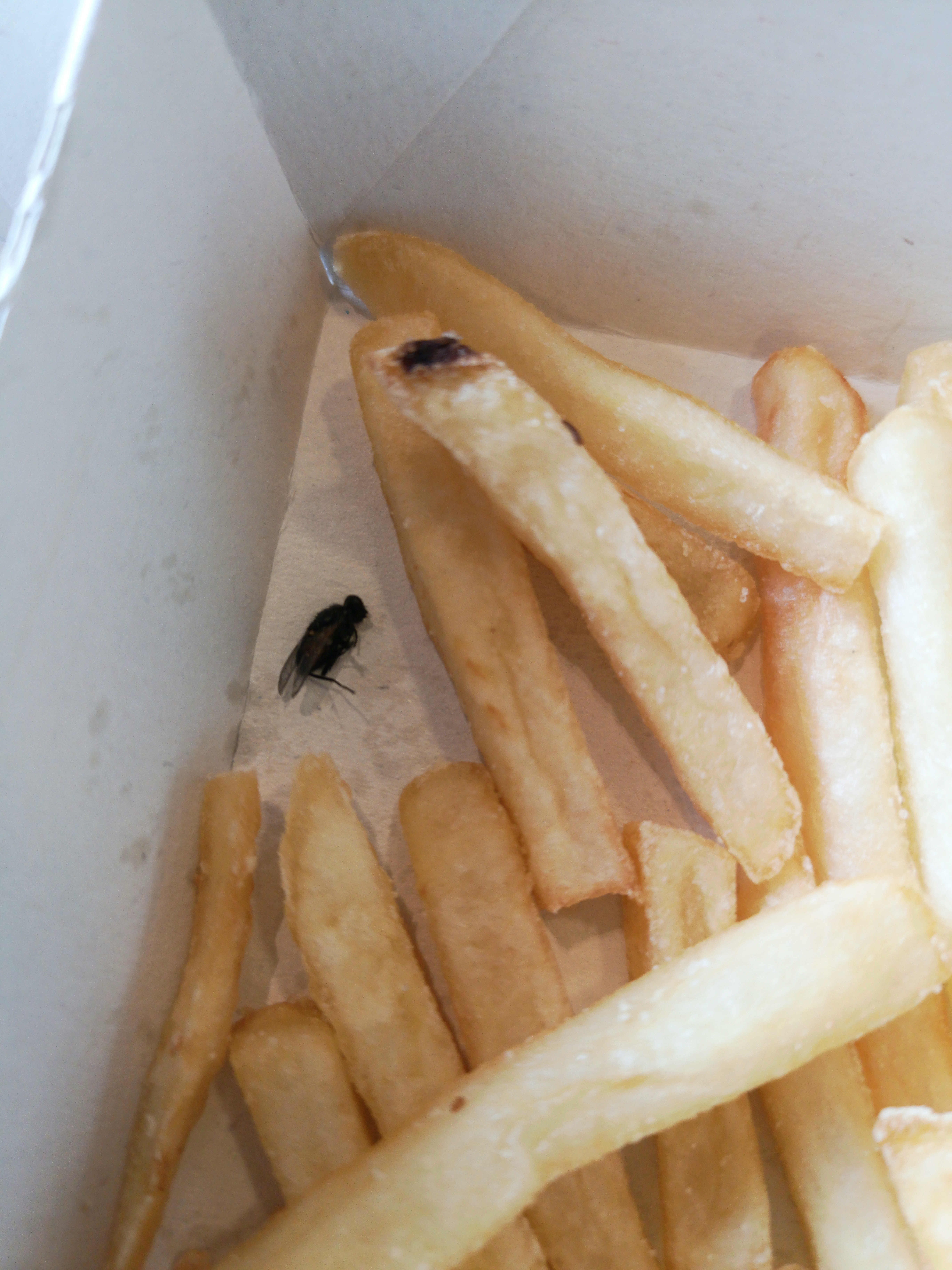 Salle un peu petite vu le monde, Plus de frites au service de midi...