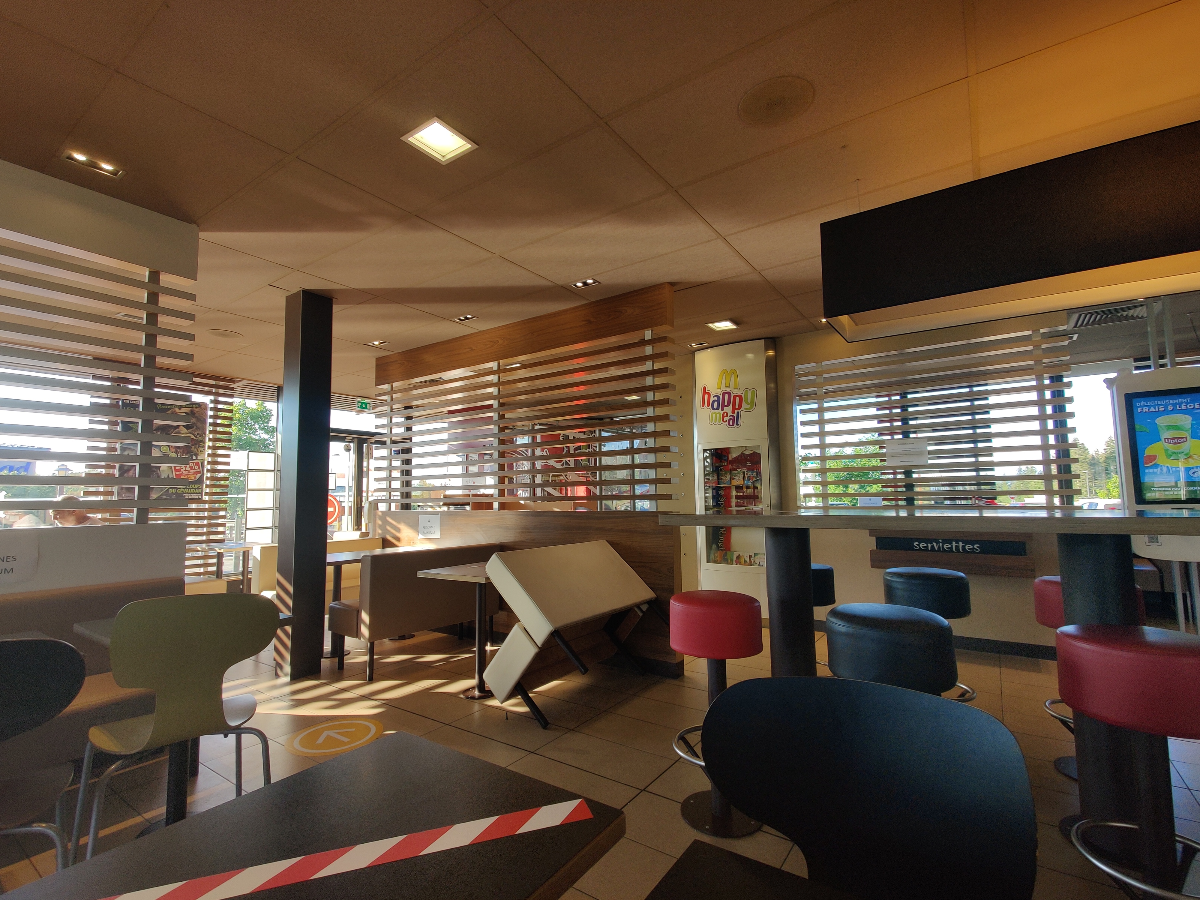 Enfin un McDo où on peut attendre nos commandes dedans et non dehors (surtout quand on a des enfants et qu'il y a du vent), et accéder aux toilettes. Merci !