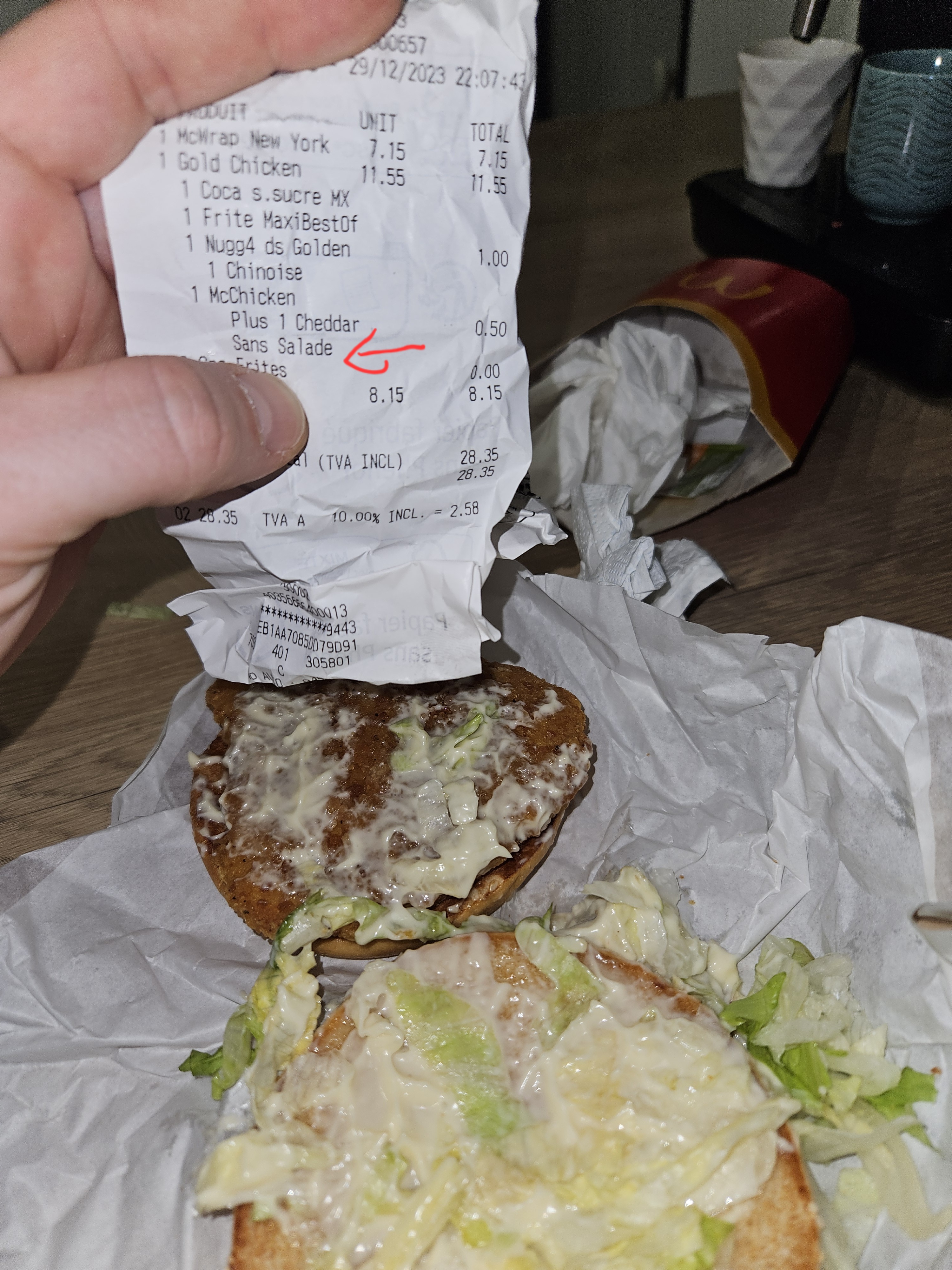 Vraiment décevant je suis allergique à la salade je demande sans salade et il y a quoi de la salade honnêtement honteux de rendre les gens malade 😷 et en plus j'ai même pas mangé 😭