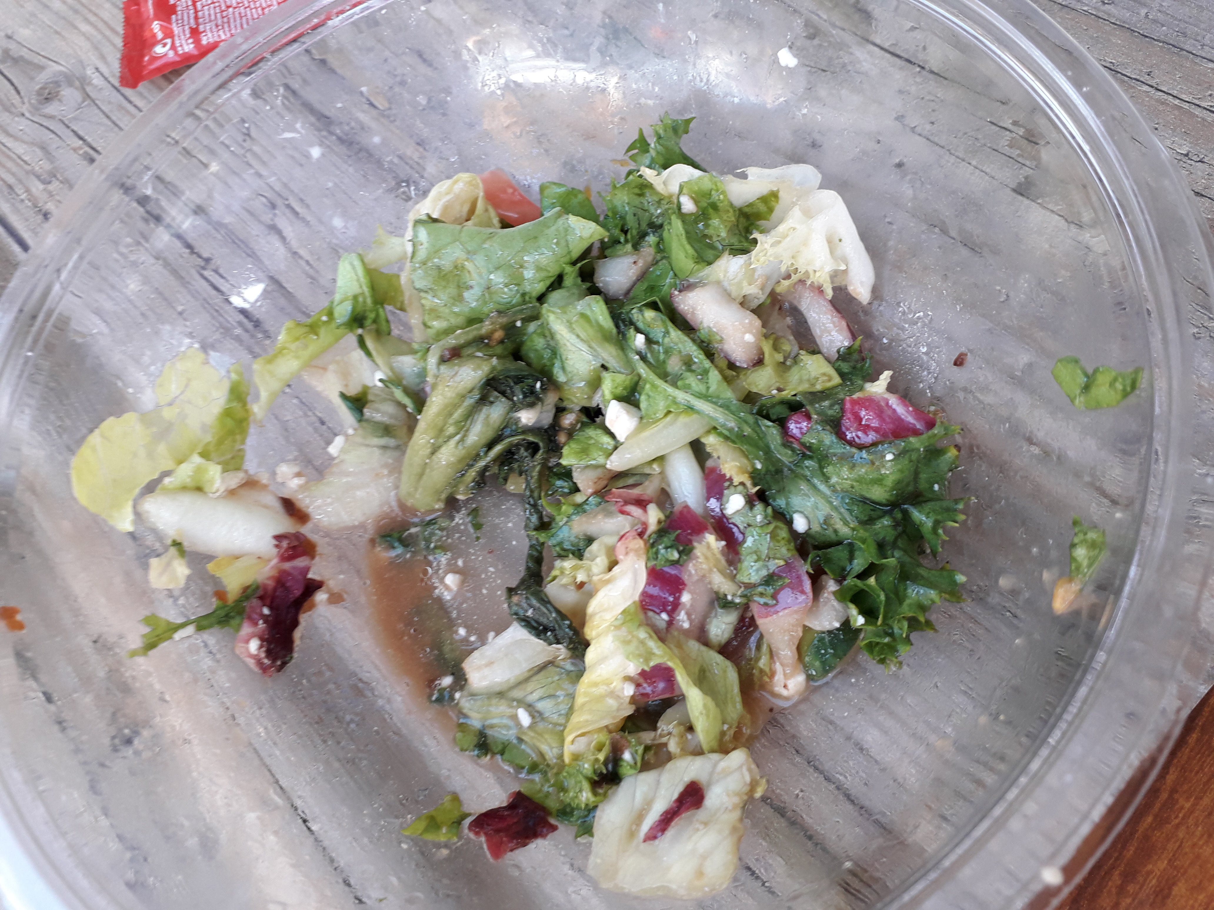 Quel surprise en ouvrant mon petit wrap !! Je ne sais pas si il a été à moitié mangé ou si c’était des restes de galette mais même pour des petites faim vous ne devriez pas envoyer des choses de la sorte à vos clients.