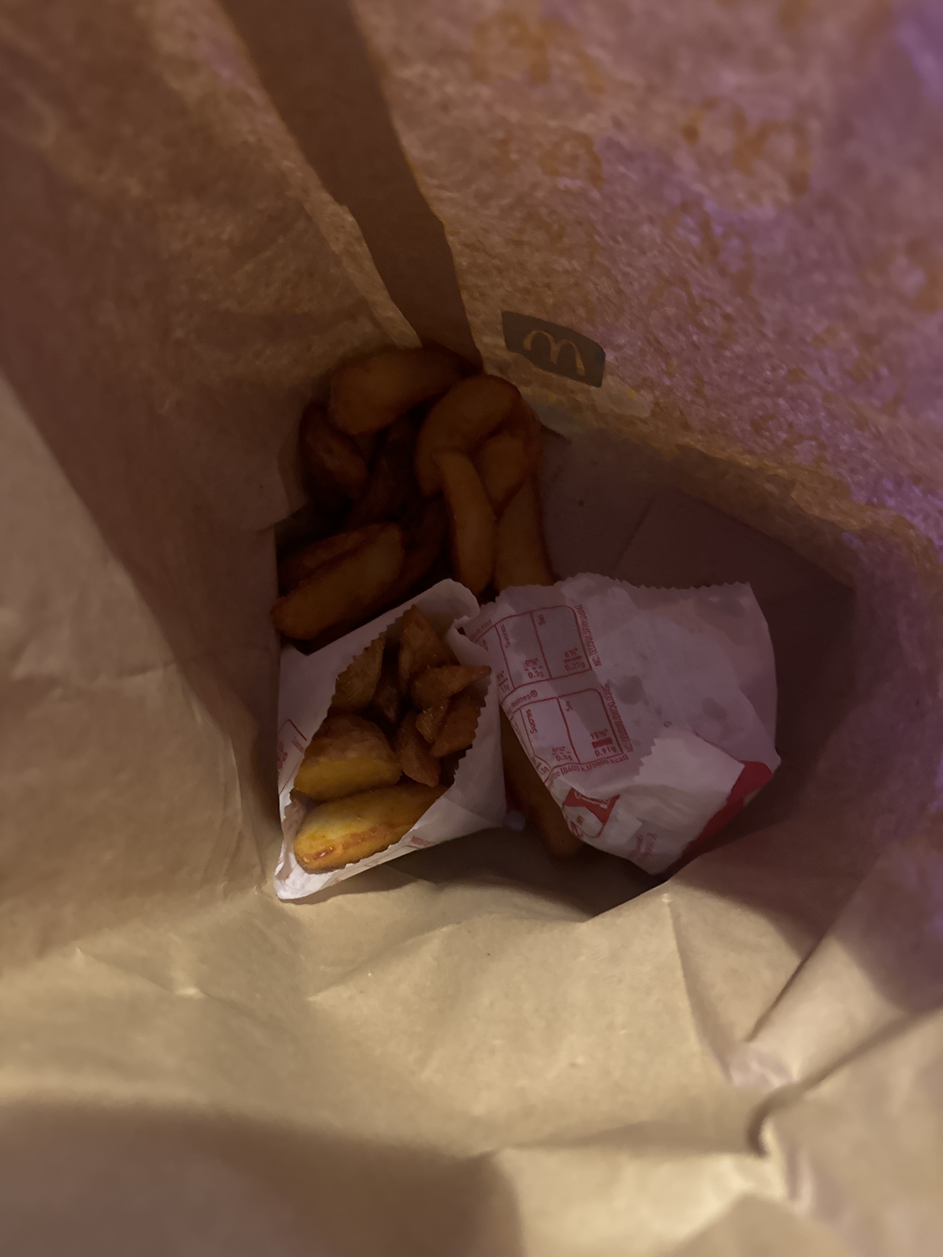 À quoi ça sert de commander sur l’appli un click and collect si quand on arrive la préparation n’a même pas commencé, 26min d’attente pour un menu Smart c’est honteux. Si vous avez trop faim je ne recommande pas ce McDo pour le service moyen et lent, j’avais des frittes inclus dans mon menu mais voici ce que j’ai trouvé dans le sac, bravo.
