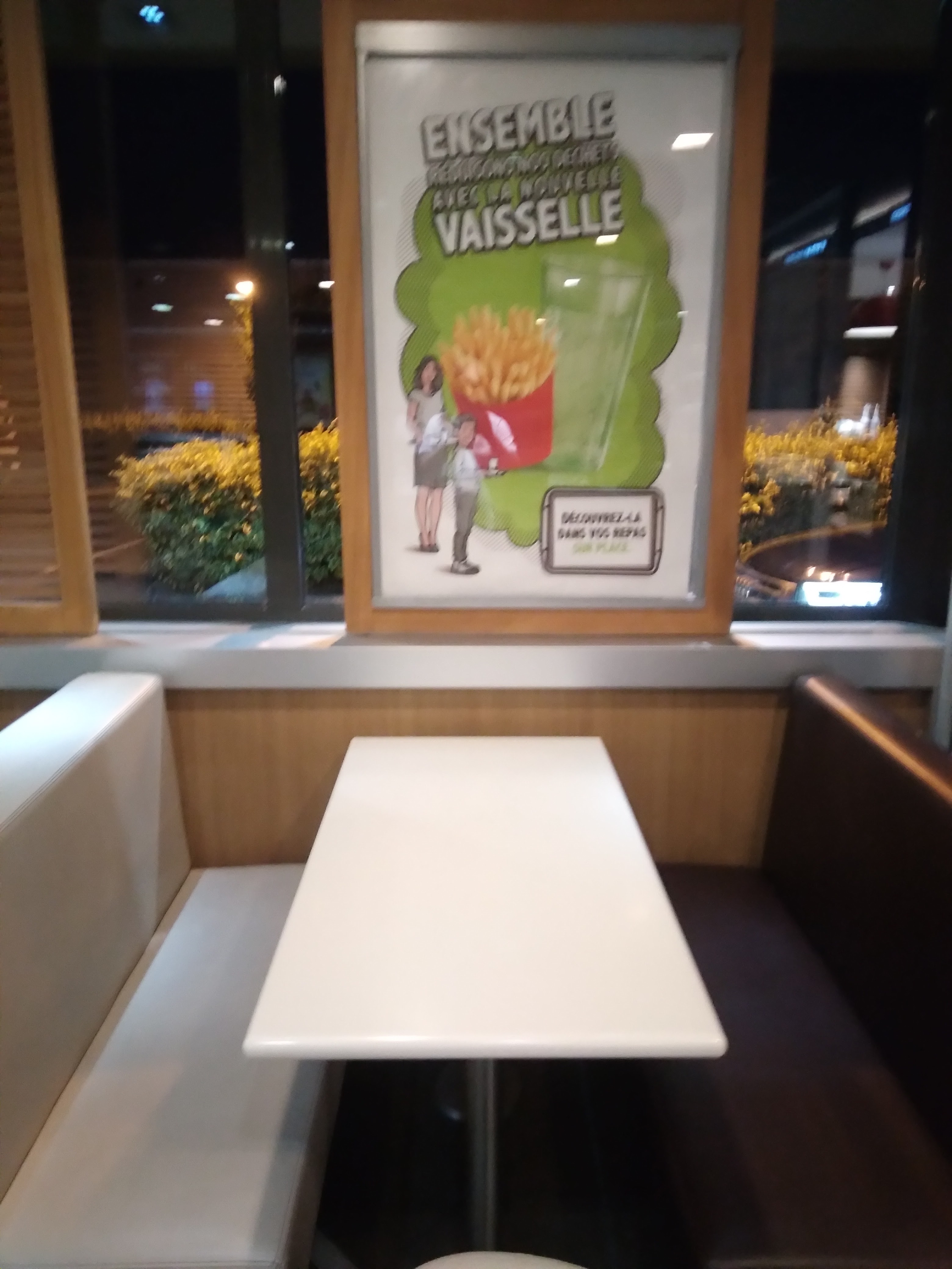 Je me suis demandé en rentrant si j’étais à macdo ou à la déchèterie. Apparemment les frites par terre ainsi que le réservoir de boisson usagée qui fuit ne dérange personne. Vue l’augmentation du macdo c’est insolent.