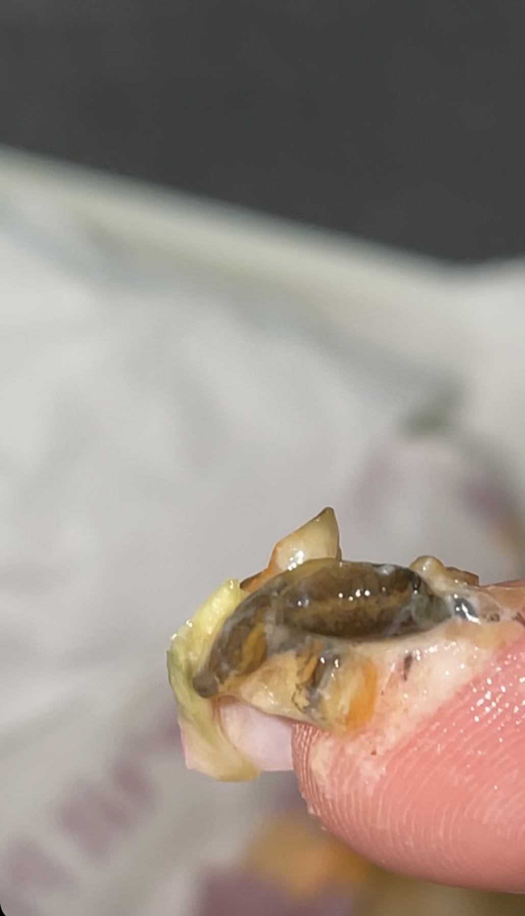 Je viens d'acheter des nuggets et dans la boîte il y a une nuggets à moitié manger, c'est littéralement écœurant.