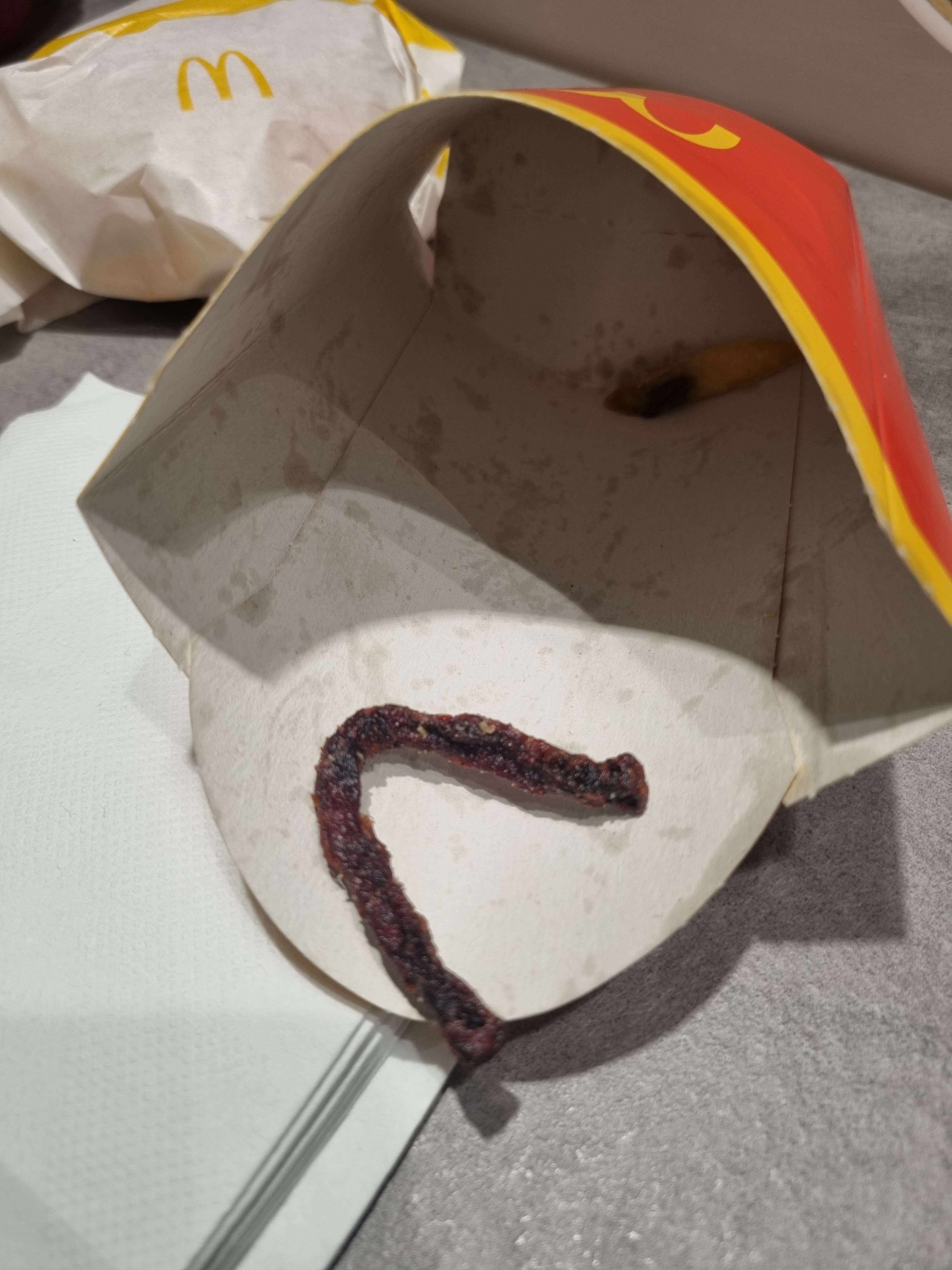 Passage ce soir au drive, j’ai commandé un simple menu best of, je le ramène chez moi, je bois ma boisson et me rend compte qu’il y avait un insecte dedans ! J’y étais déjà allé la semaine dernière et niveau hygiène c’était moyen, mais là c’est catastrophique ! Plus jamais je n’y remettrais les pieds ! Ça tombe bien, le Burger King est à 2 minutes du macdo en voiture, ça reste moins cher, meilleur, on a tout le temps une commande complète (pas besoin d’y retourner parce qu’il manque quelque chose) et pas d’insecte dans la boisson ! Donc c’est simple pour moi, ADIEU MACDO !
