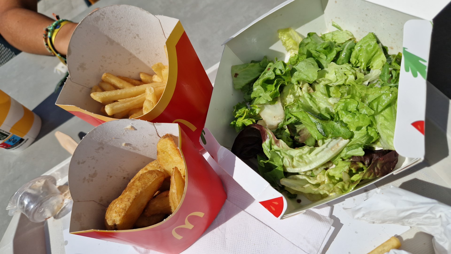 Au drive: on ne prend pas ma commande et 1 voiture passe devant moi, je décide donc d’avancer. On prend ma commande après et on s’excuse, on me dit d’attendre que ma commande arrive sauf que j’ai attendu 15 min dans voiture sans savoir qu’il fallait aller la chercher nous meme. En ce moment il y a les verres MCDO avec les menu maxi best of et là encore on a oublié. Je rentre donc chez moi qui a 2 min en voiture, mes frites sont froide, mon coca est sans bulle et ils ont oublier la sauce de mes nuggets. Franchement dégoûter.