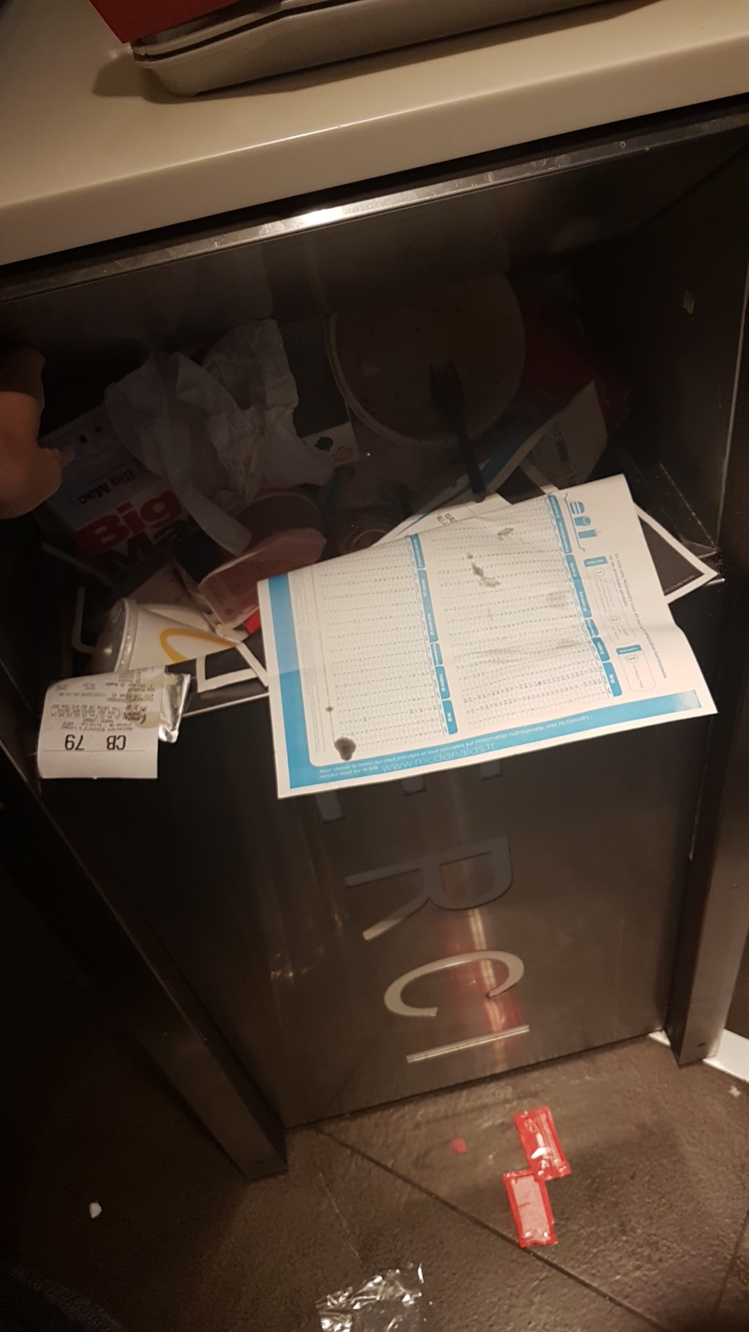 Sol qui colle, poubelles qui degueulent, tables encombrées par des plateaux sales, les hamburgers sont froid, menu incomplet une fois servi... Photo des poubelles à l'entrée..