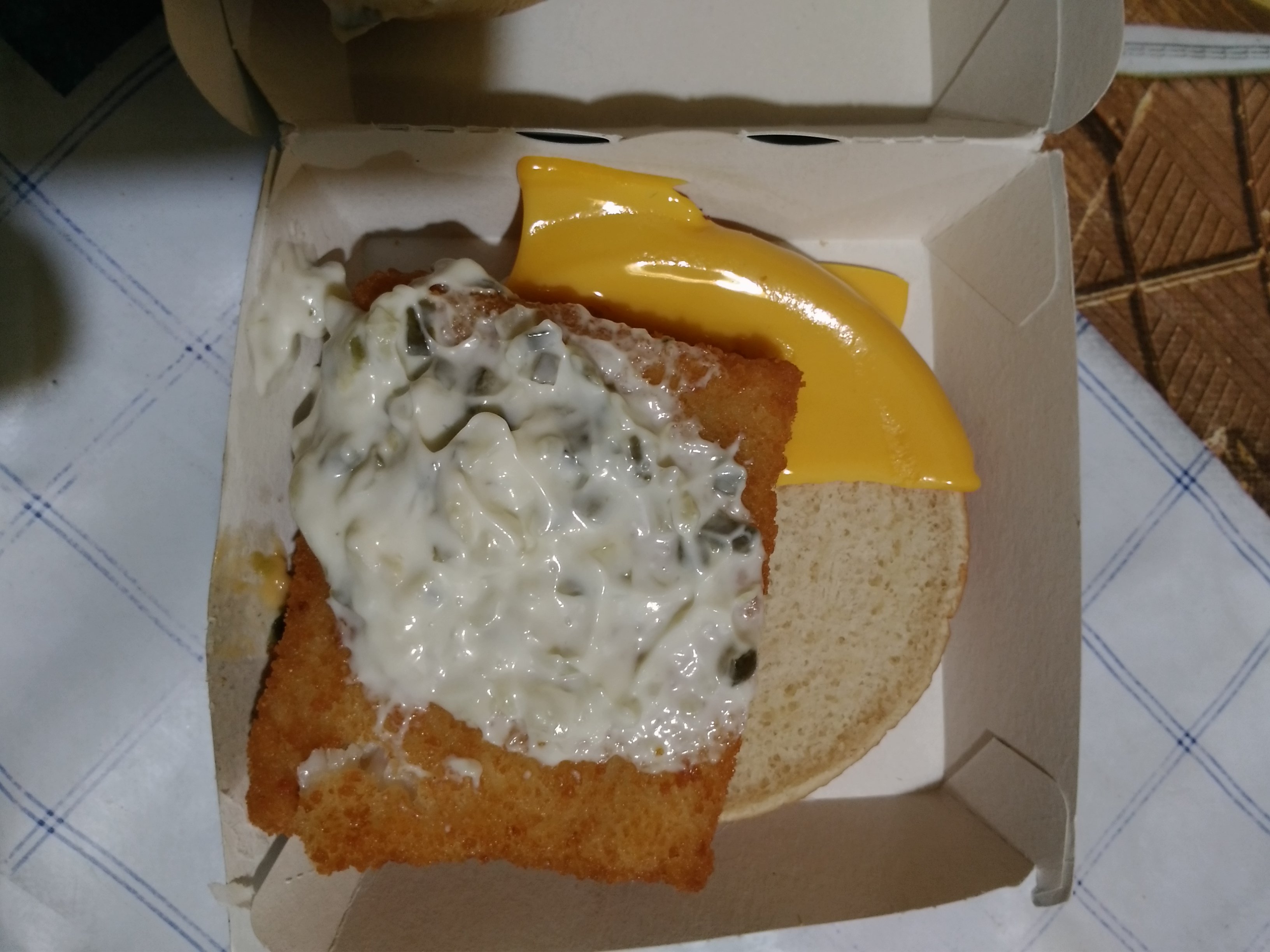 J’ai commander un filet ofish il était applatit et pas très bon. Les frites étaient bonnes Le chocolat chaud n’avait pas de goût et le gâteau non plus.