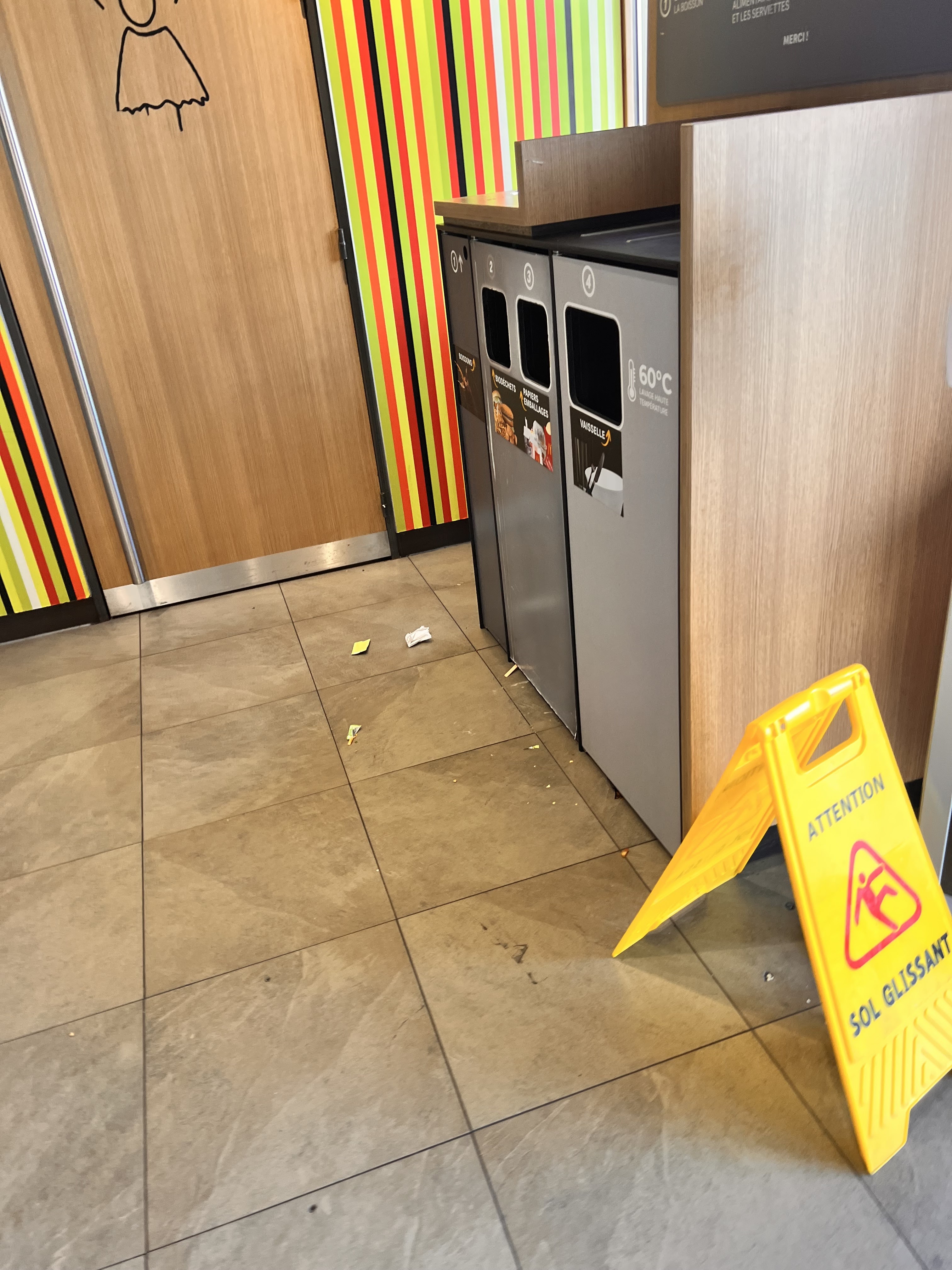 Ce restaurant est véritablement très dangereux un sol glissant ...gras j'ai faillit chuter avec ma fille ...Mac Donald étant une grande chaîne l'hygiène et importante ...