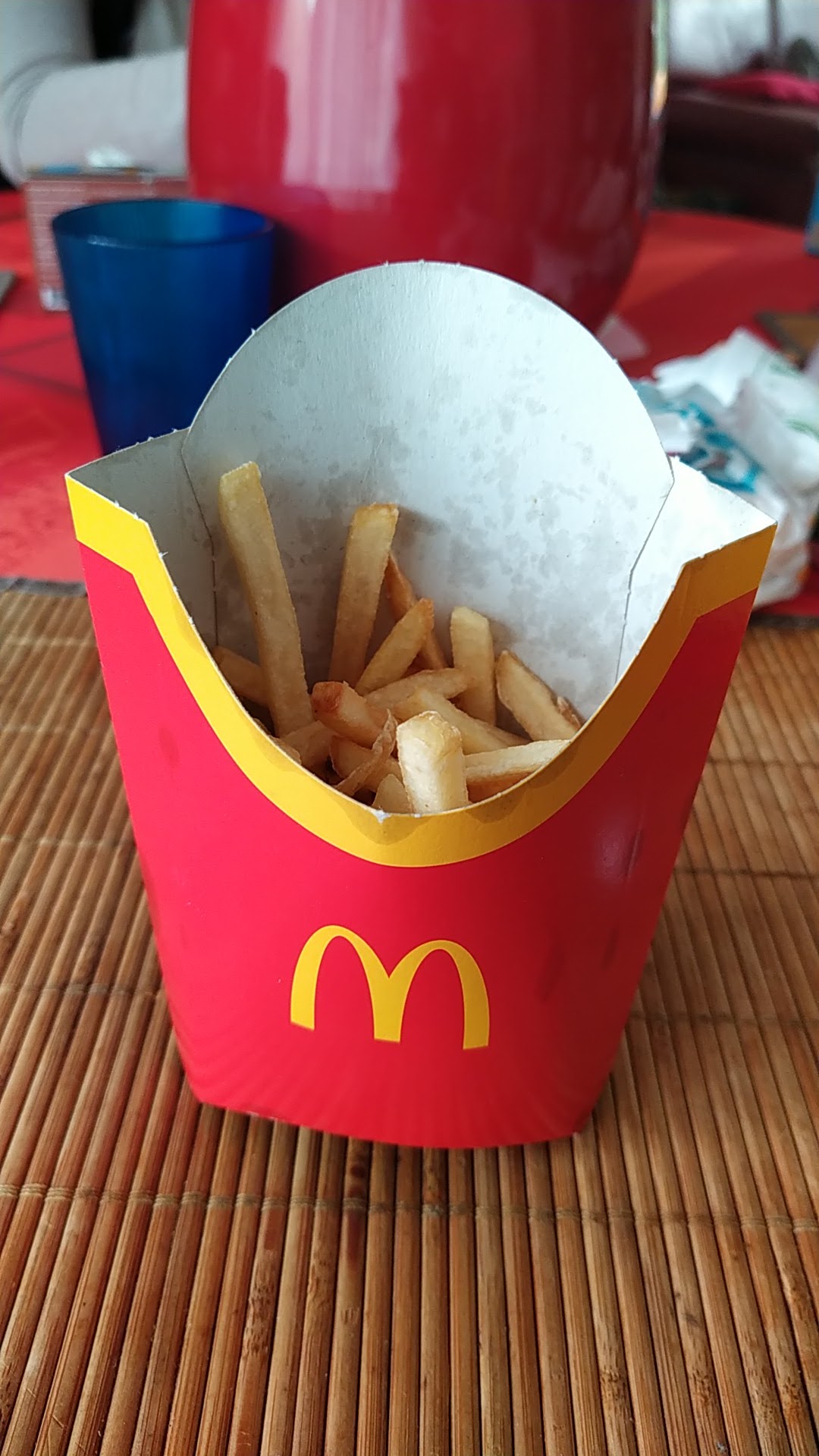 J'ai gagné une grande frite avec le jeu Monopoly la semaine dernière. Ce soir je décide de commander en click & collect et de profiter de ma grande frite offerte... . Je récupère ma commande et rentre chez moi, pour découvrir que ma frite offerte ne m'avais pas était donner !!! Donc je me permet de la signaler, vérifier vos sachets AVANT de partir du McDO.