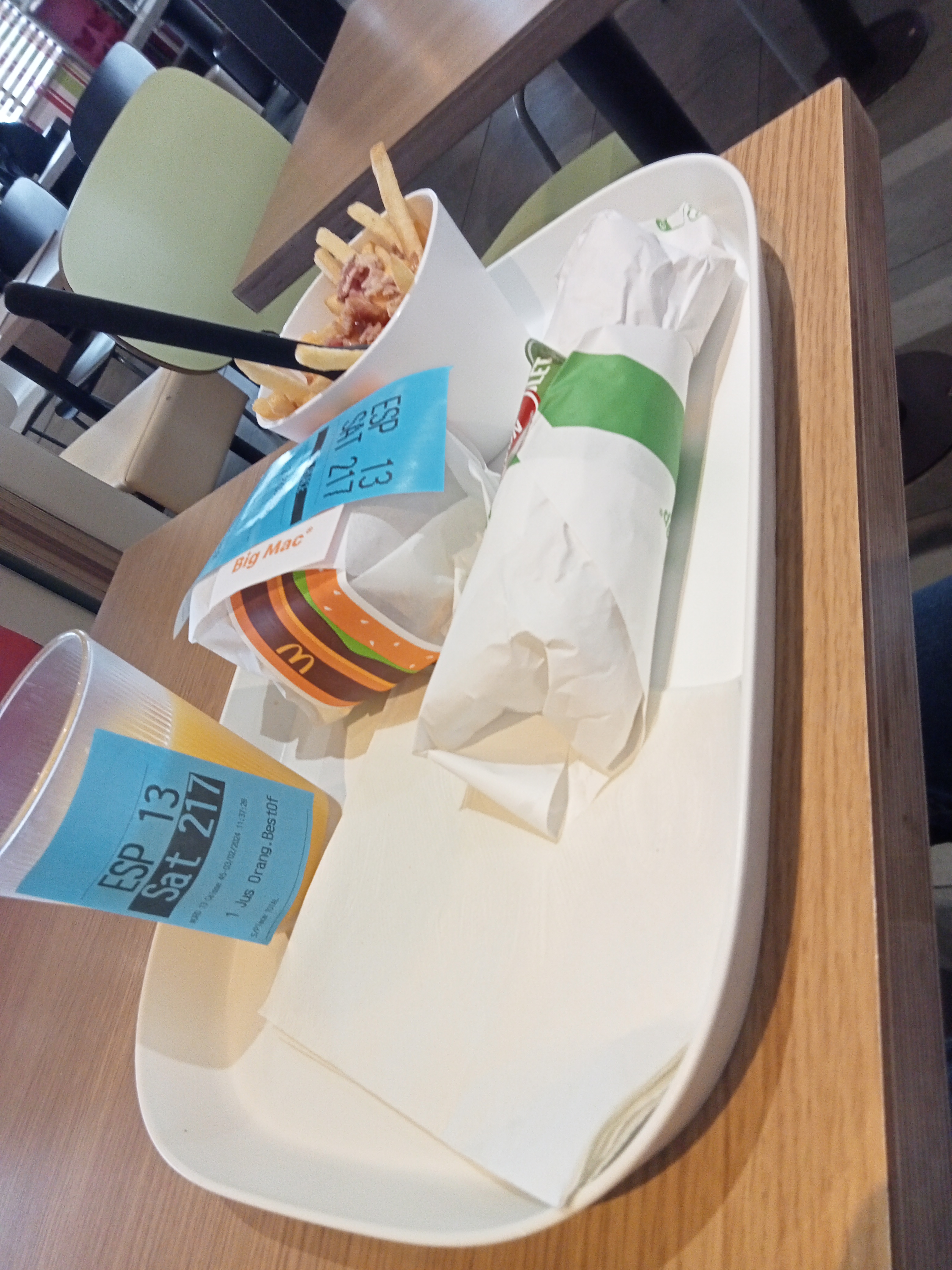 Macdo a 16h, donc, 5 min d’attente pour prendre notre commande alors qu’on attend devant la borne, 10 minute pour nous servir, ça réussi à oublier les frites dans le menu et ça se trompe de boisson, l’es sandwich sont froid, on se demande si il date de 1h ou plus. Le macdo était vide. A chaque fois que je vais à ce macdo c’est la misère. Service déplorable.