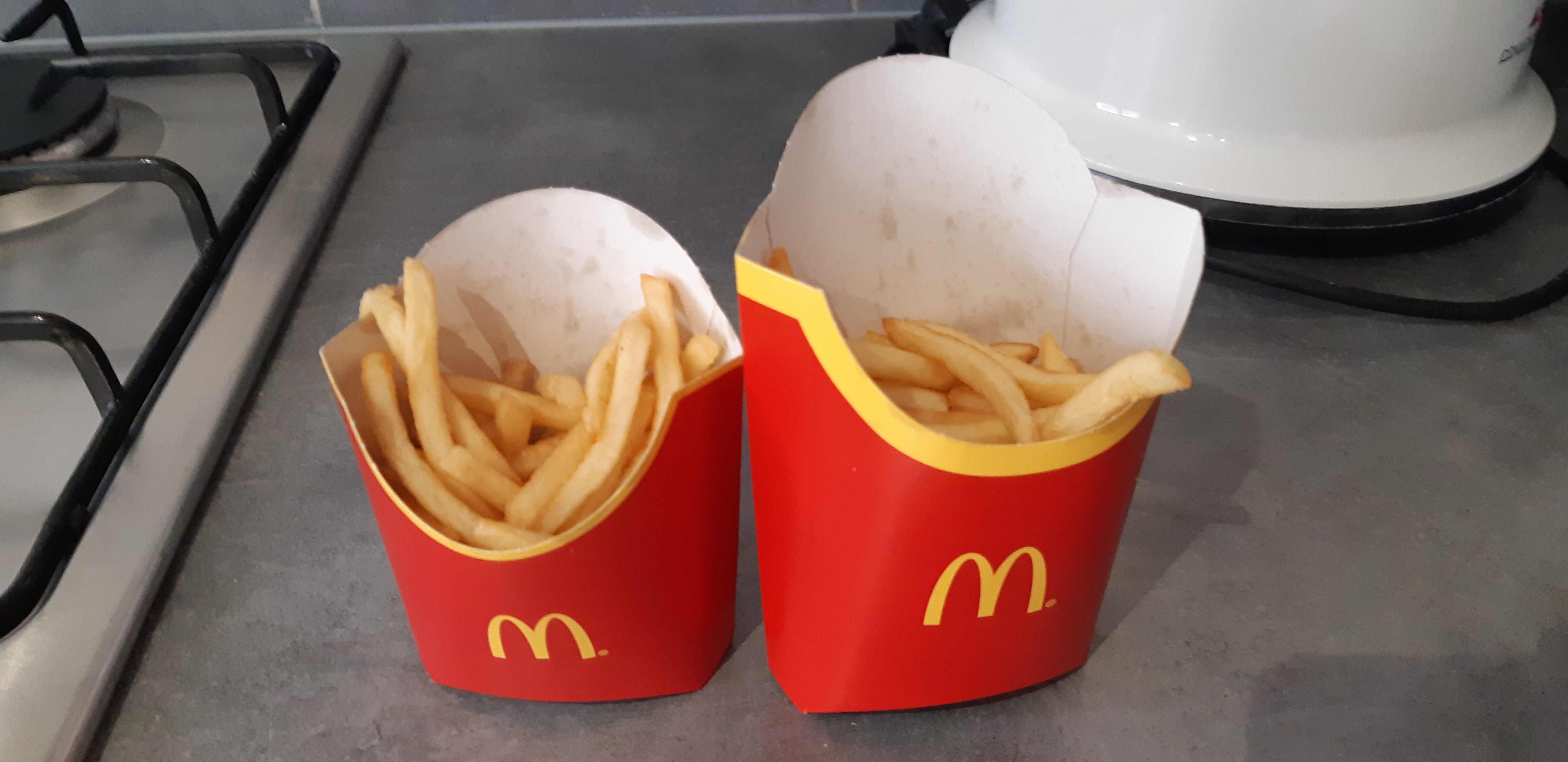 Vraiment dommage. on commande plusieurs menu, et je me retrouve avec une boîte de frittes presque vide….