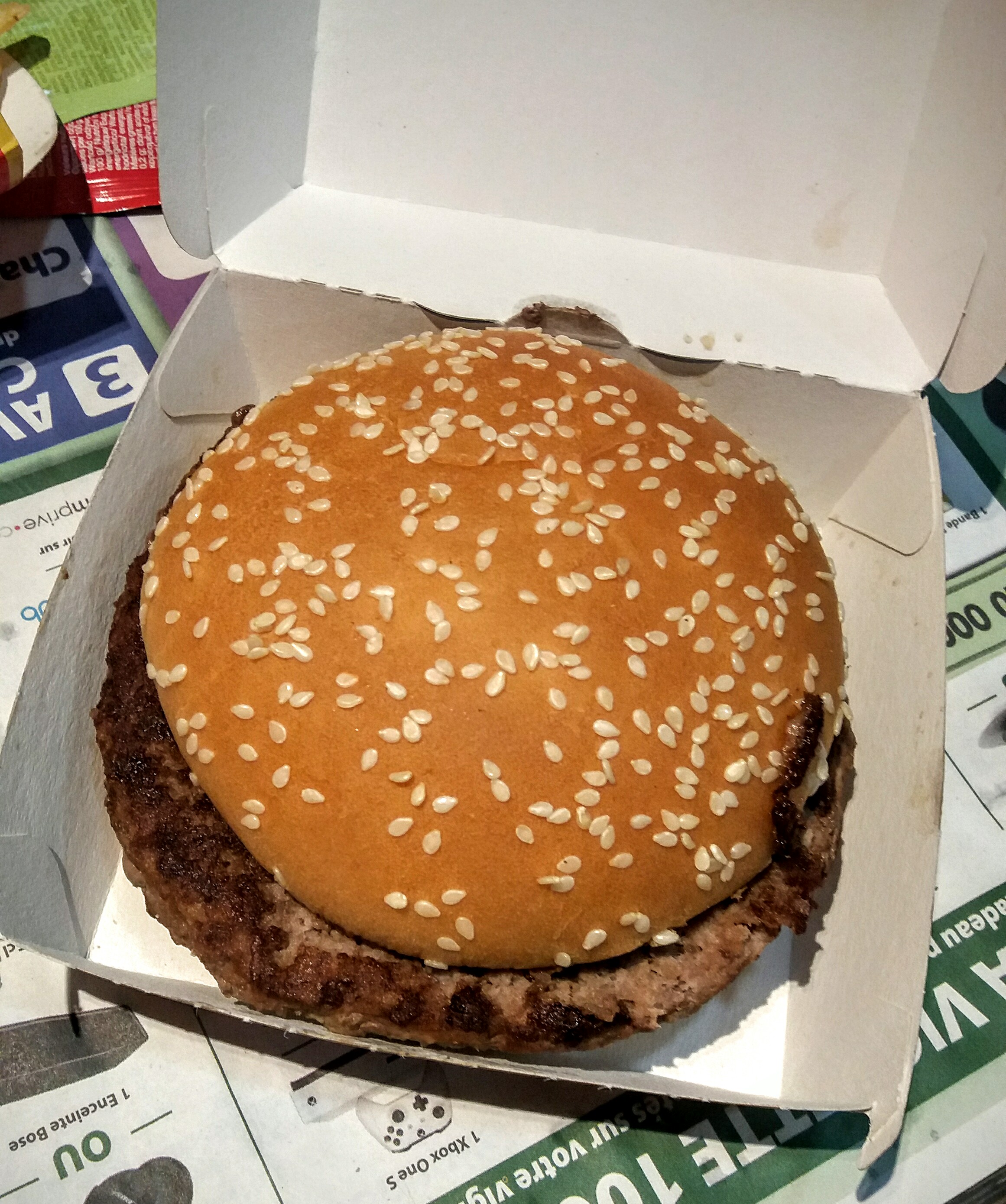 J'ai commandé vers 21h, je n'aurais jamais du je suis déjà malade à cause du repas que j'ai mangé. Certes le macdo a été rénové mais question burger c'est autre chose :s