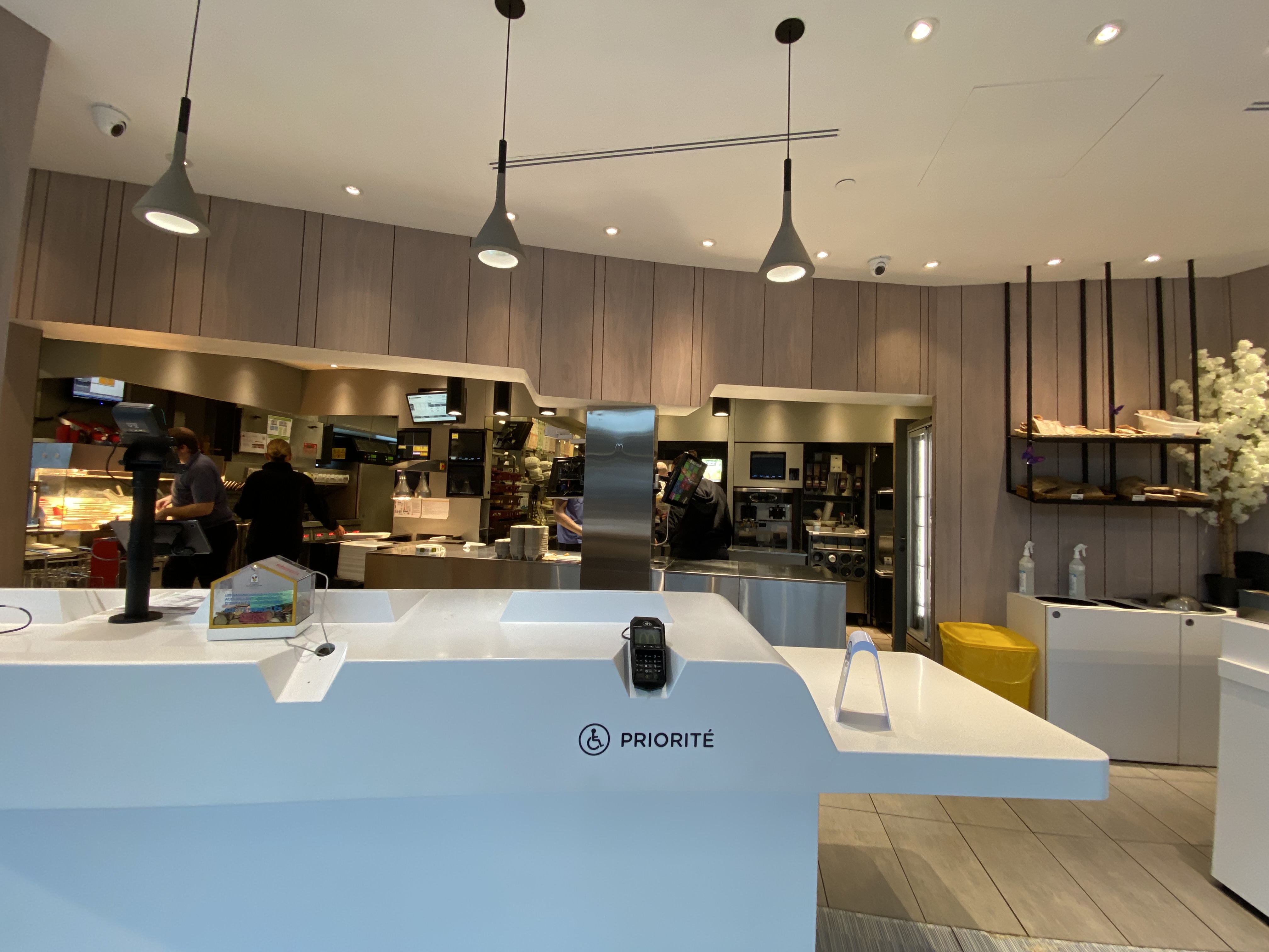 Très propre, excellente équipe et pas énormément d’attente. Petit espace de jeu pour les enfants sympathiques. Bar à salade et Mc café