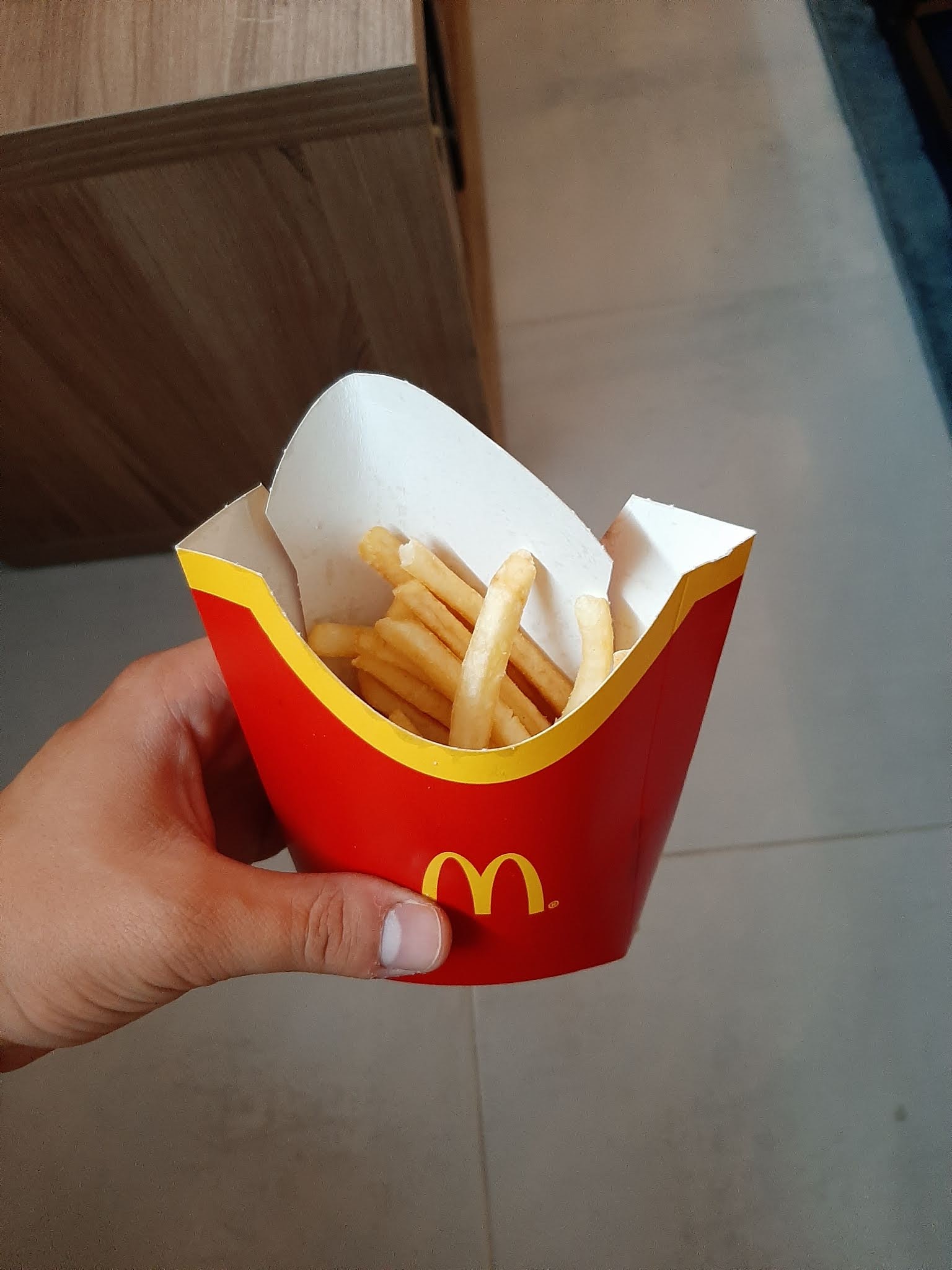Je souhaite laisse mon avis concernant ce Macdonald suite à ma dernière visite. Comme vous voyez sur la photo, ceci était supposé être une frite maxi, on nous fait payer des suppléments afin d'avoir davantage de frites pour au final nous retrouver avec un cornet moins rempli qu'une petite frite d'un menu enfant ! Le pain de mon Foccacia et de mon Big Mac étaient durs, trop cuits et croquants comme une biscotte. De plus l'accueil laisse vraiment a désirer, ok c'est un fast-food mais il y a quand même un minimum de respect à avoir. De manière générale mcdo ne respecte pas son discours et encore moins ses clients (surtout au drive), c'est une honte de leur part et je n'y retournerai plus.