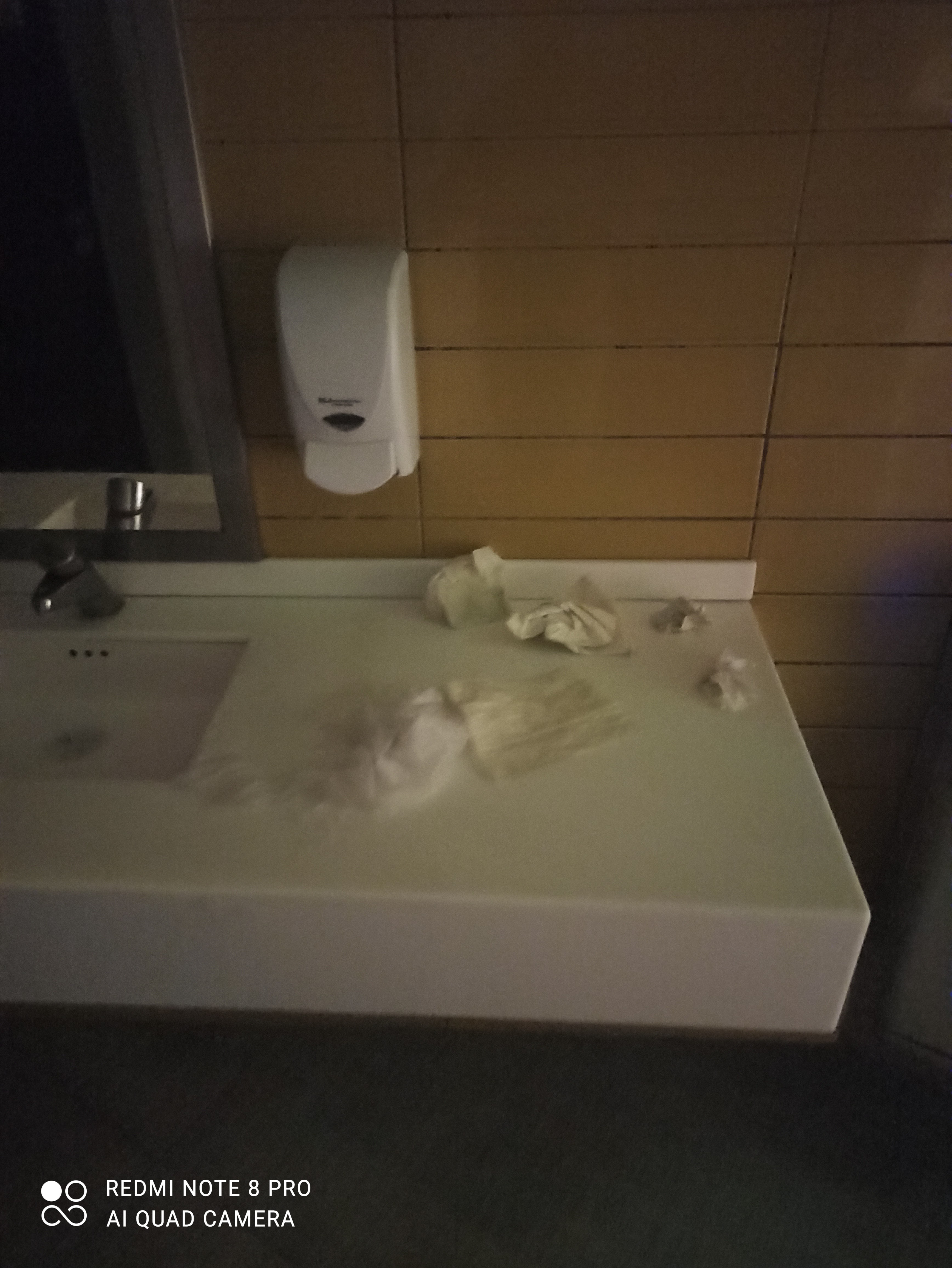 Le lavabo avec un sceau dessous pour récupérer l'eau.... Et l'odeur dans les chiottes... Comment une entreprise qui brasse un pognon fou peut avoir des conditions hygiène comme cela ???