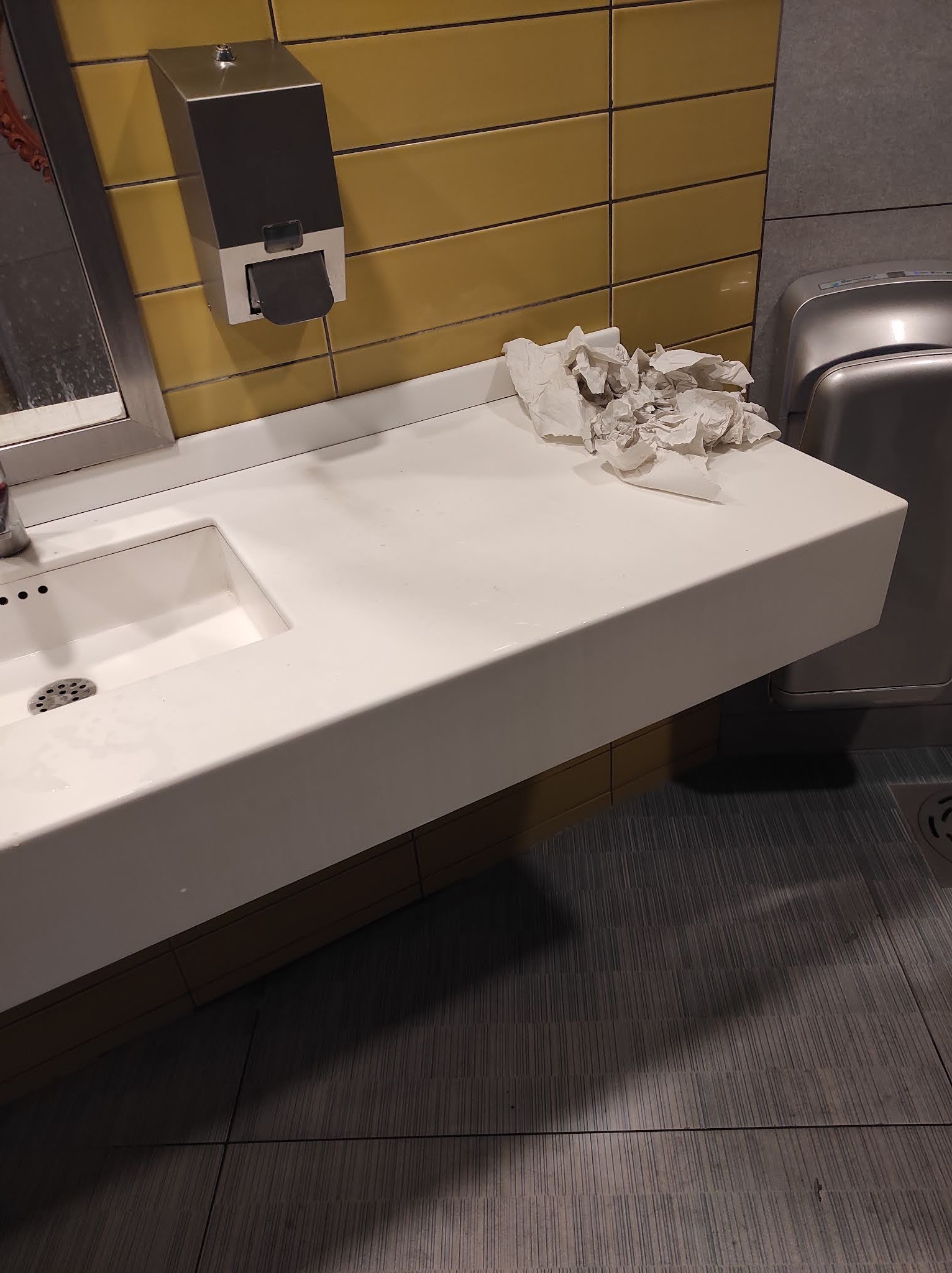 Nourriture.. ok c'est un Mac do.. Poubelles qui débordent et ne sont pas vidées. Toilettes extrêmement sale. Des excréments sur les murs.. sur la brosse sur le sol.. une odeur horrible. J'y suis passée 2h après toujours dans le même etat... Je suis vaccinée c'était la dernière fois.. Je prends toujours en drive habituellement...