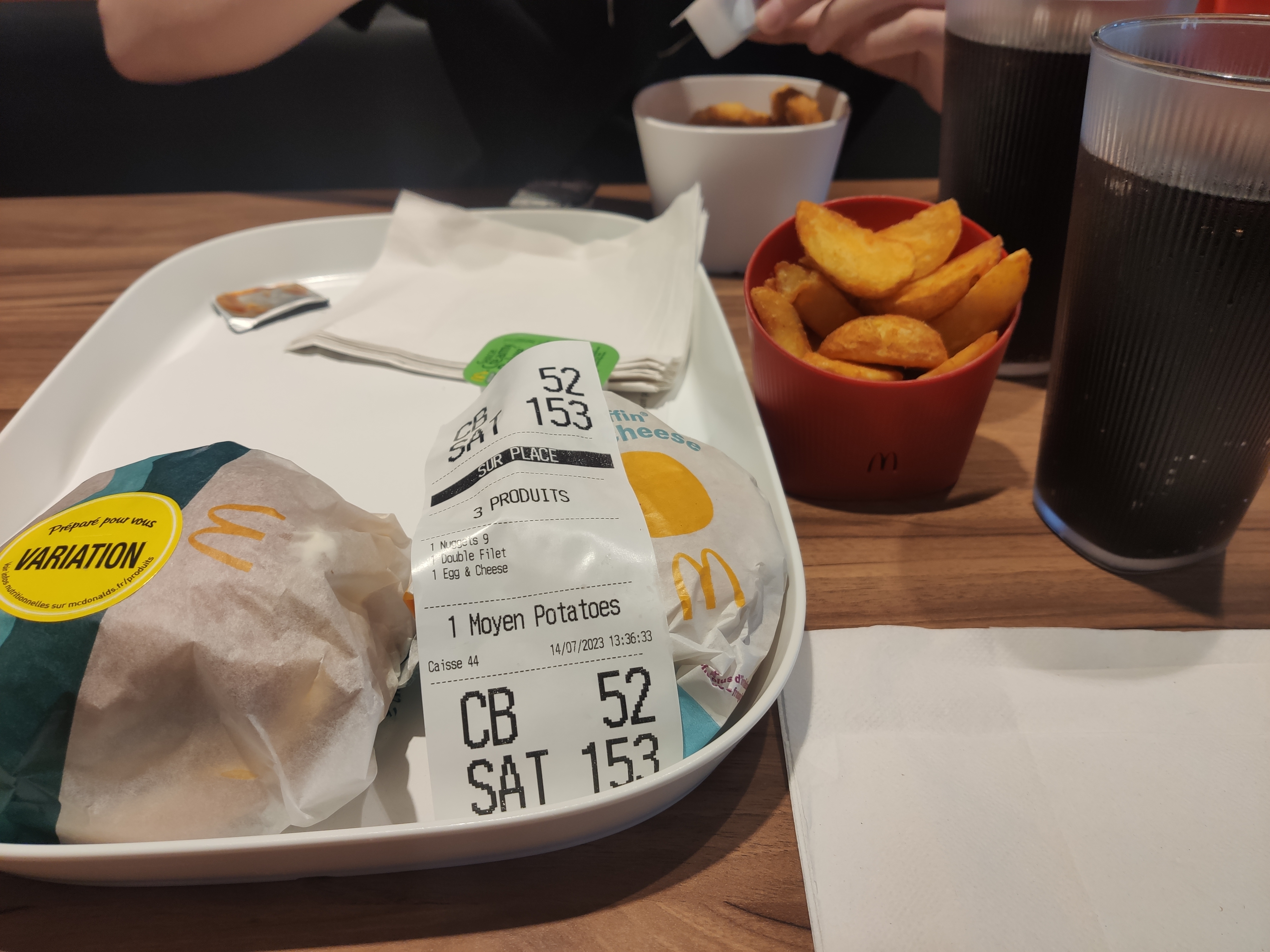 commande incomplète, il manquait les potatoes, de plus l'eggs mac muffin était cramé, pour une première commande ça donne l'ambiance...