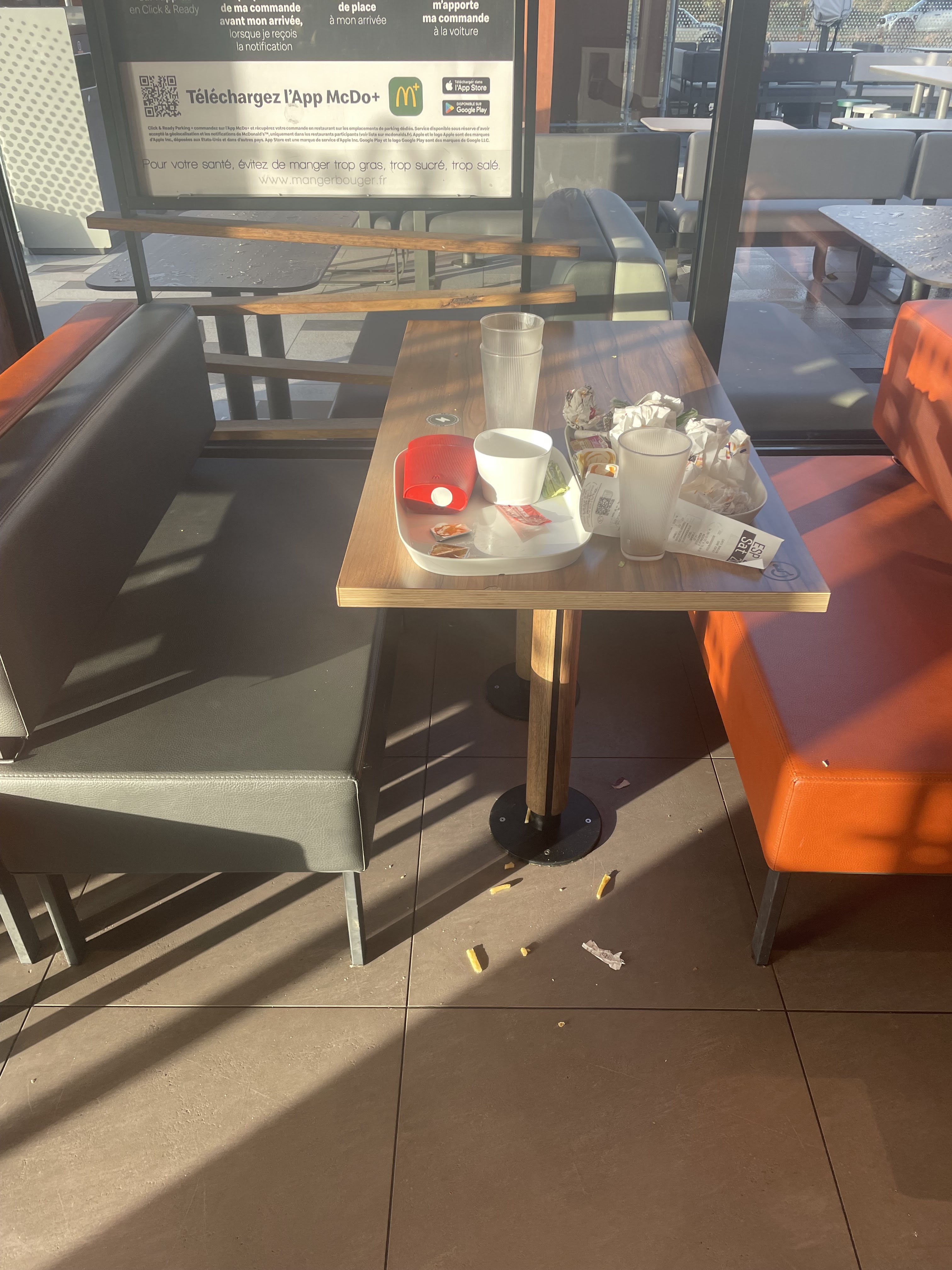 Mac Do très retiré Je lui donne 18 mois avant de fermer Mobilier salle ( le personnel a nettoyé a notre demande)