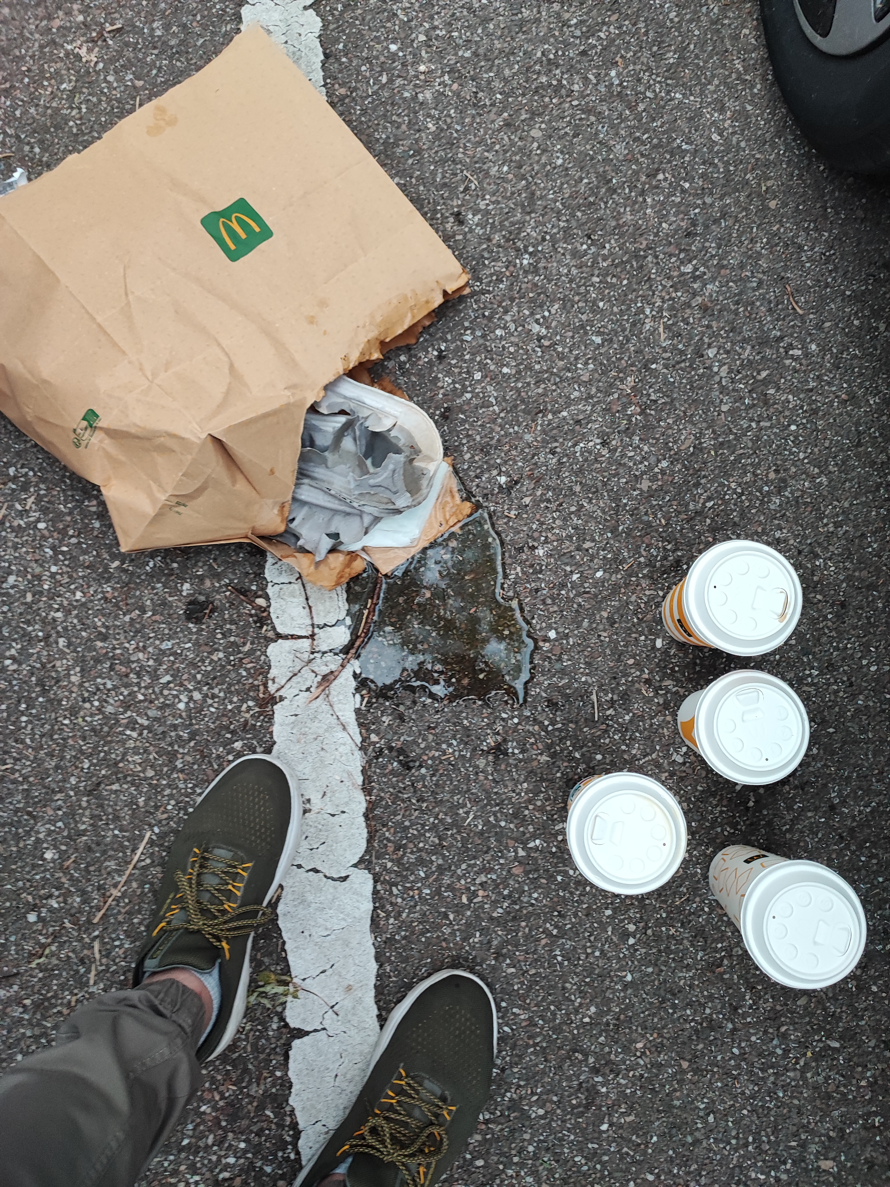 Ilme manque un donut, café sans sucre et sans touillette(donc il veulent qu'on se cramme les doigts), ont ne sais pas quelle est le latte et le capuccino.