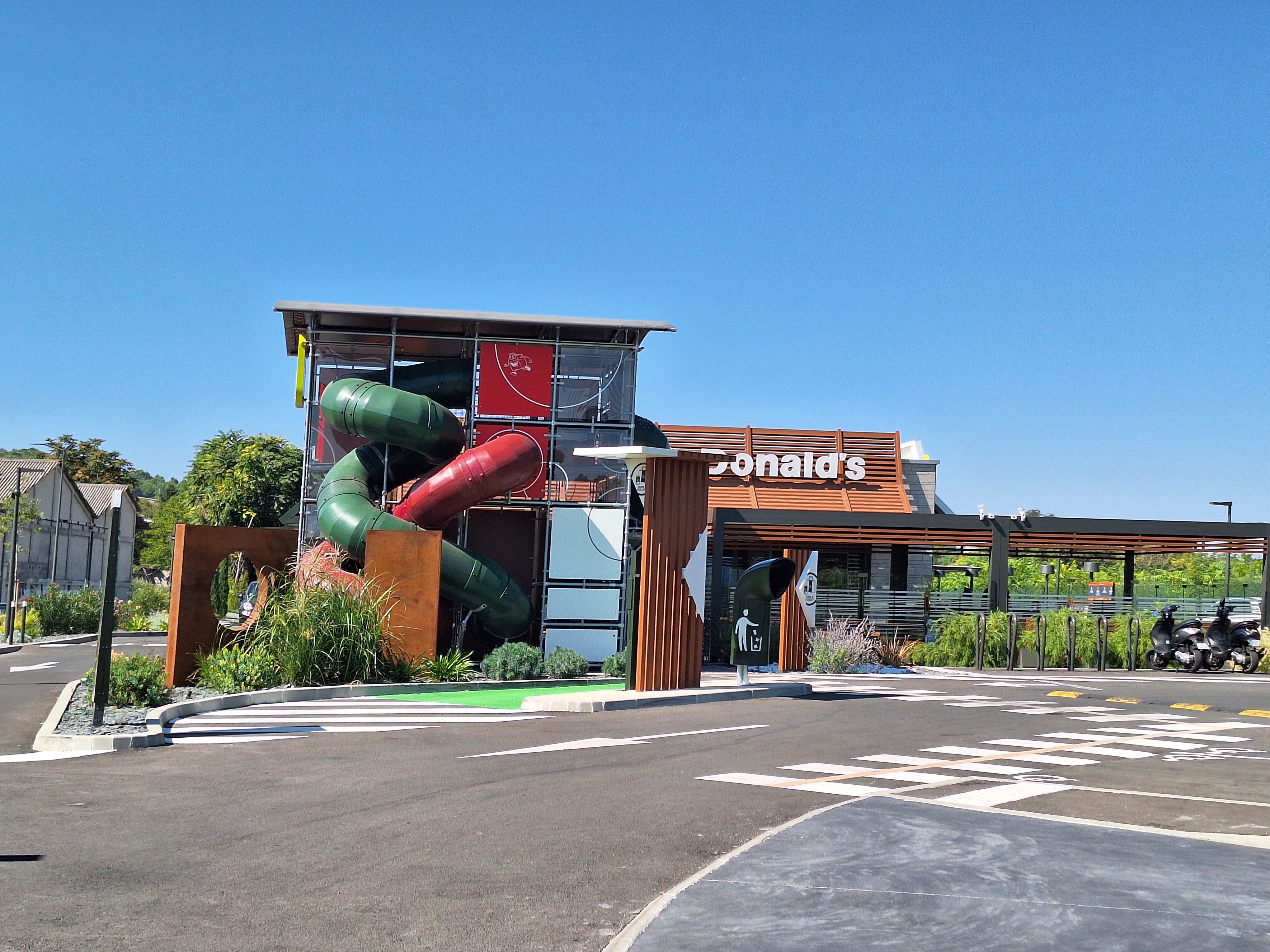 Tout beau tout neuf avec une belle vue, un grand parking, 2 Aires de jeux, Drive double piste, places réservées en Click&Collect et un McCafé !