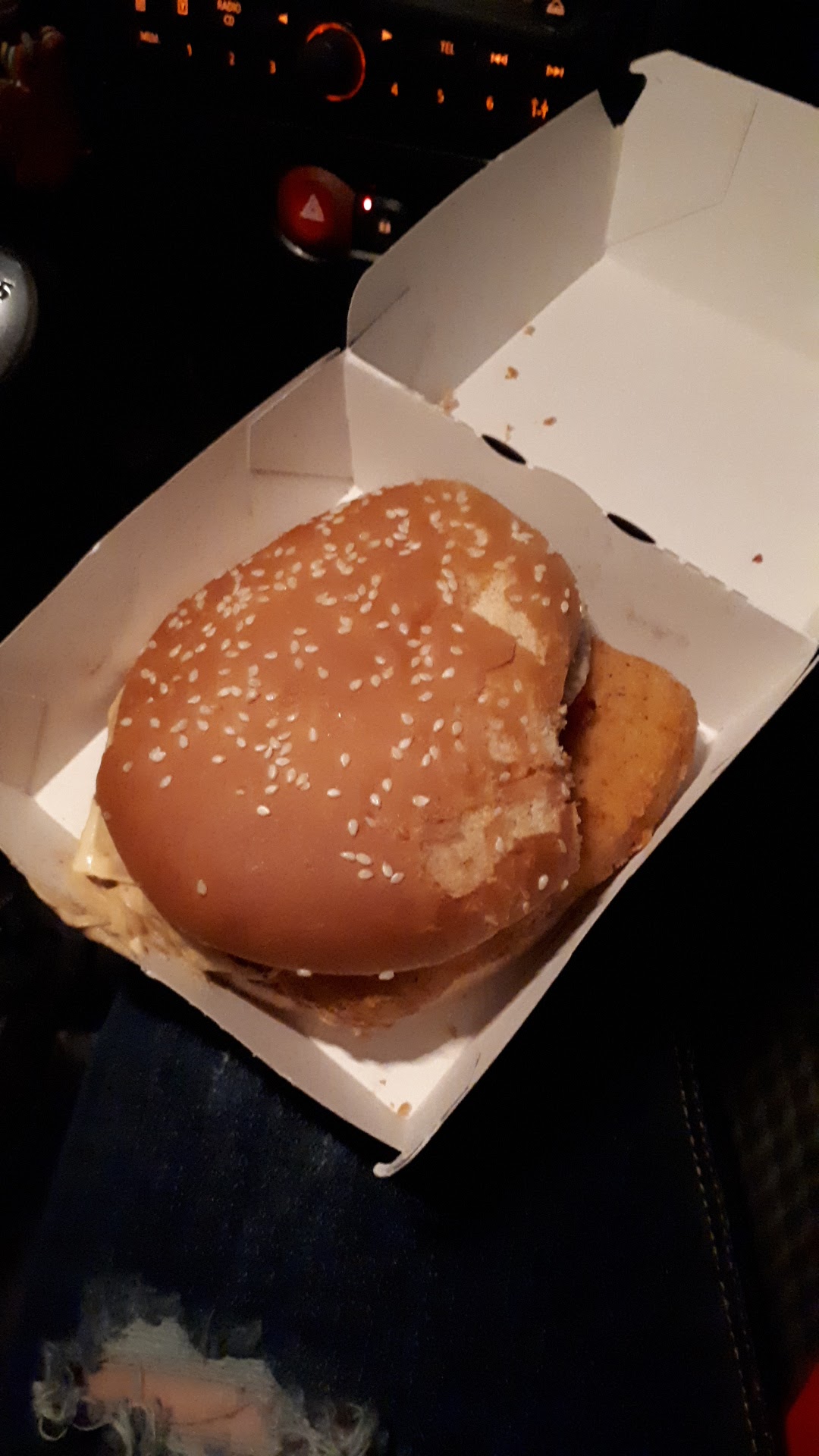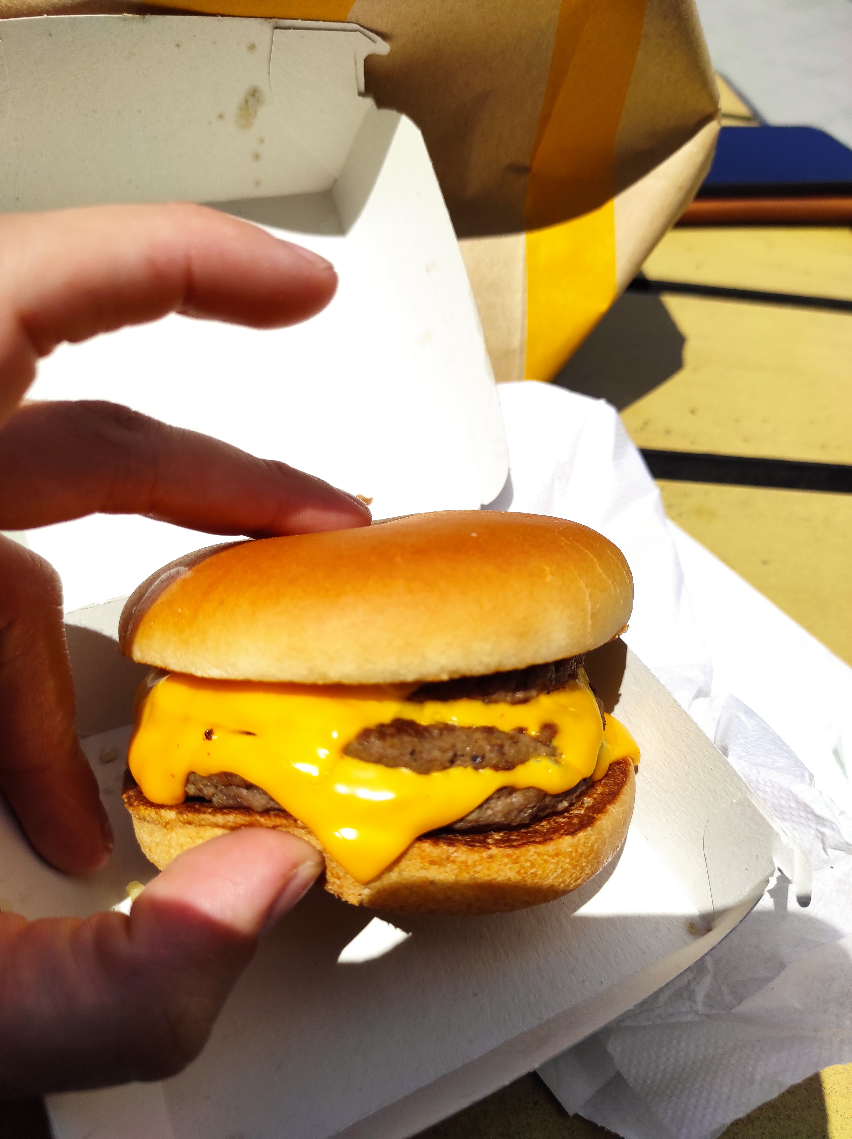 Arrivée à 20h au drive (pas à la fin du service), la moitié de la carte est en rupture. Je commande donc un des rares burger encore disponible : un double cheese bacon. Je n'aurais pas dû ! J'ai eu un burger sans bacon (probablement en rupture) et sans sauce à l'intérieur (en rupture aussi ?). Heureusement, les sauces en sachet, que j'avais précisé ne pas vouloir, étaient dans le sac, elles. J'ai pu ouvrir mon burger pour finir de le préparer moi-même.