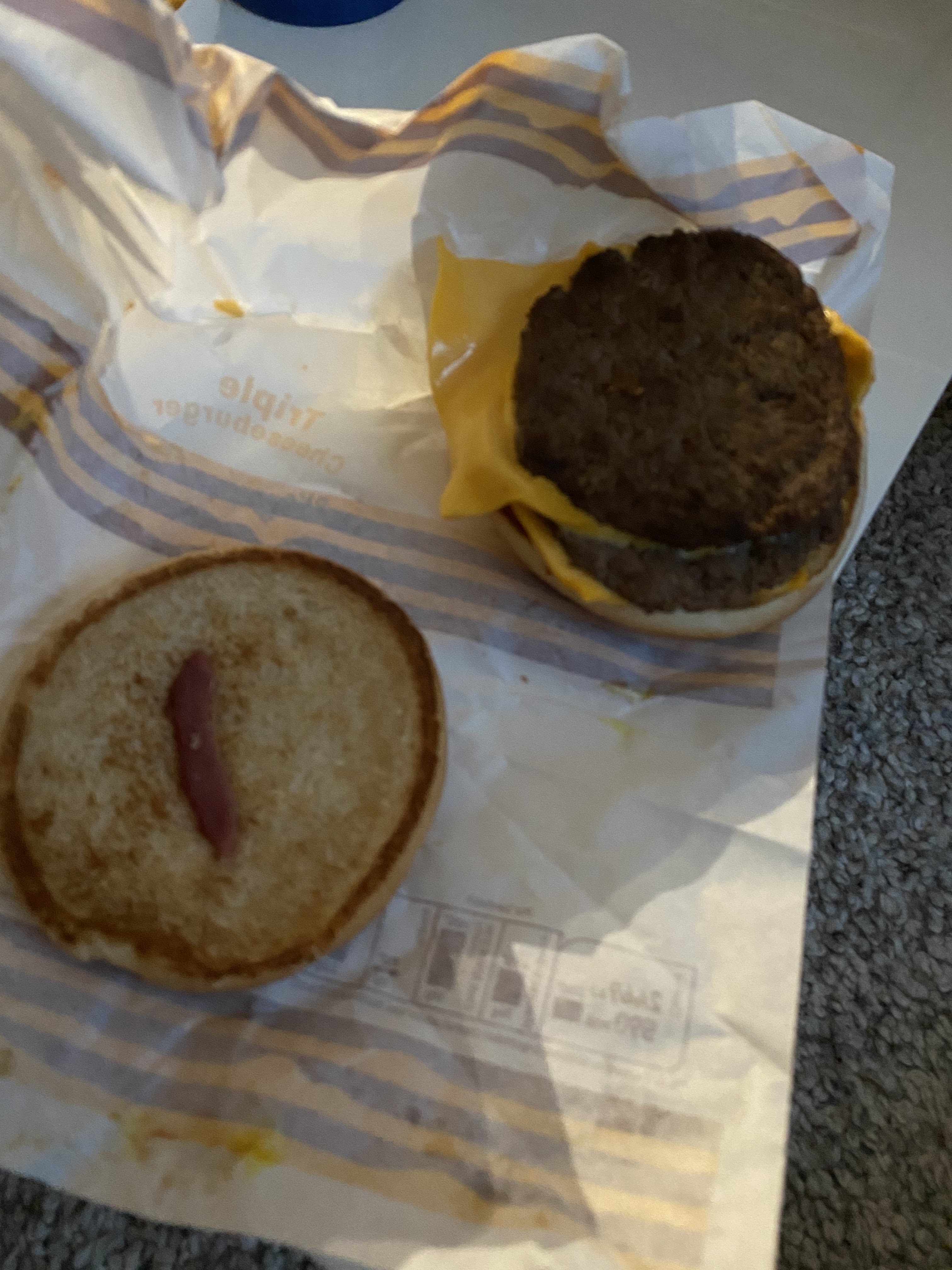1h d’attente en livraison Uber eats. 3 livreur ont annulé car trop long et bien sur même si j’ai acheté une sauce en + j’en ai eu 0 au lieu de 3 sauce BBC et veuillez admirer la dose de bacon dans mon triple cheese bacon où on vous rajoute bien des sous pour un mini bout de bacon 🤡
