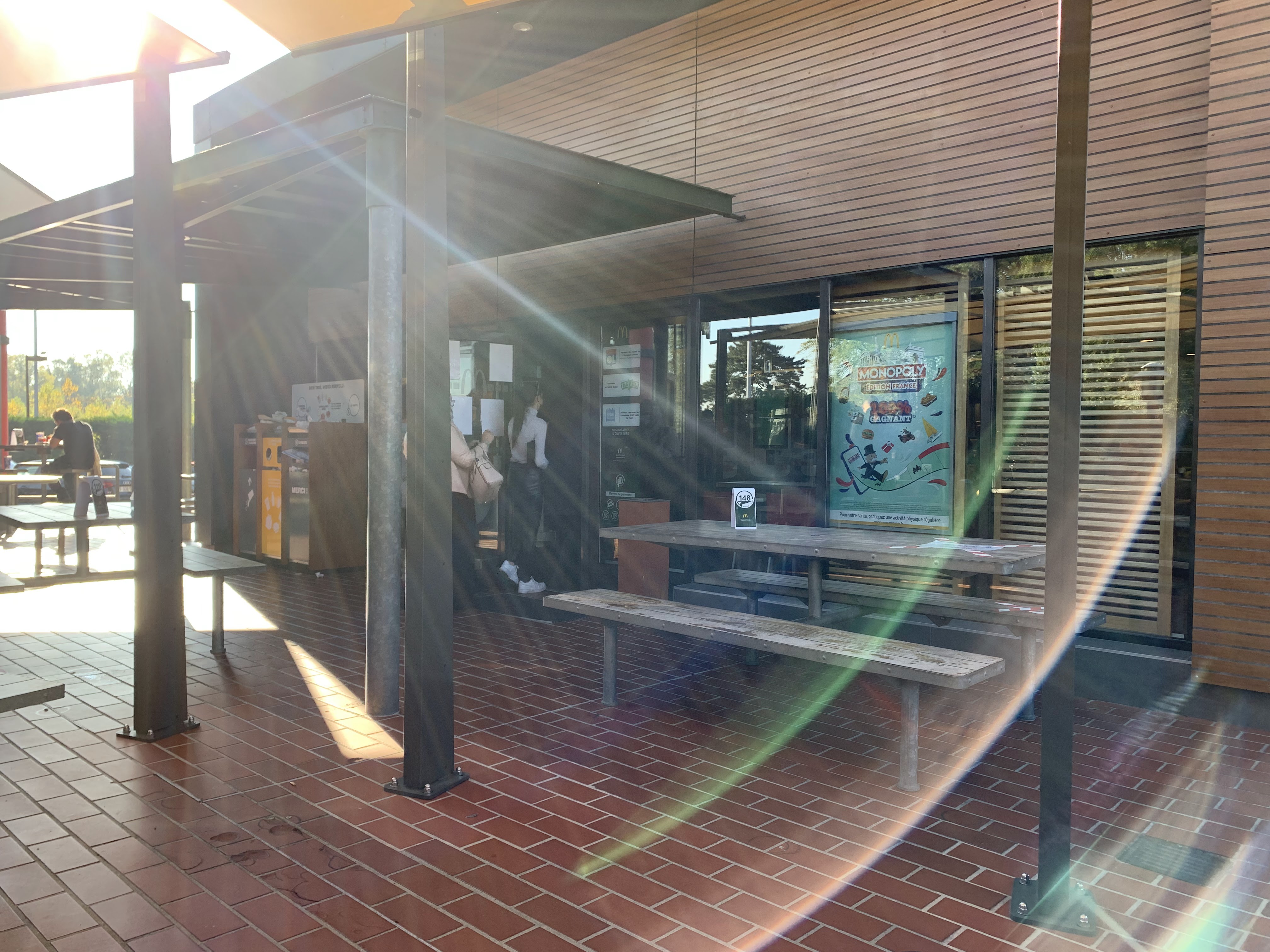 Mon arrivée à 15h00 environ resto presque vide 1 étoile pour répondre Tables sales ,poubelles de tri non vidées résultats un amoncellement de plateaux J'ai commandé 2 menus il n'y avait pas grand monde 1/4 heure après Frites froide Mac frist froid plus la tomate tout juste sortie sortie du frigo. Comme dans un autre commentaire j'aurai du lire les avis avant de venir
