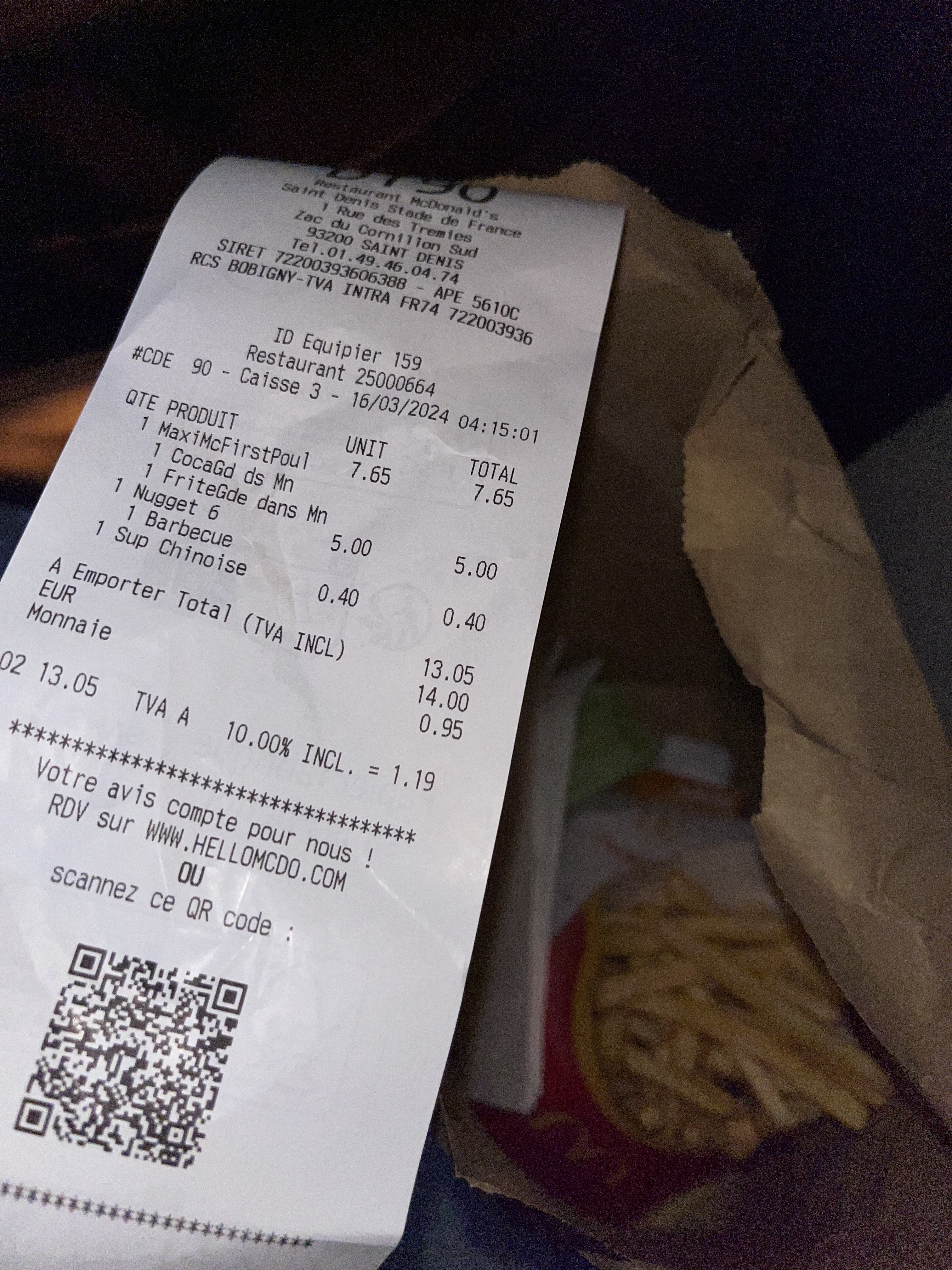 Merci à l'équipe de Mcdo Saint Denis la Plaine ! Merci pour leur bonne humeur, leur accueil, leur sympathie, leur amabilité...! Et Merci à Ibrahim qui a été d'une gentillesse exceptionnelle 🥰