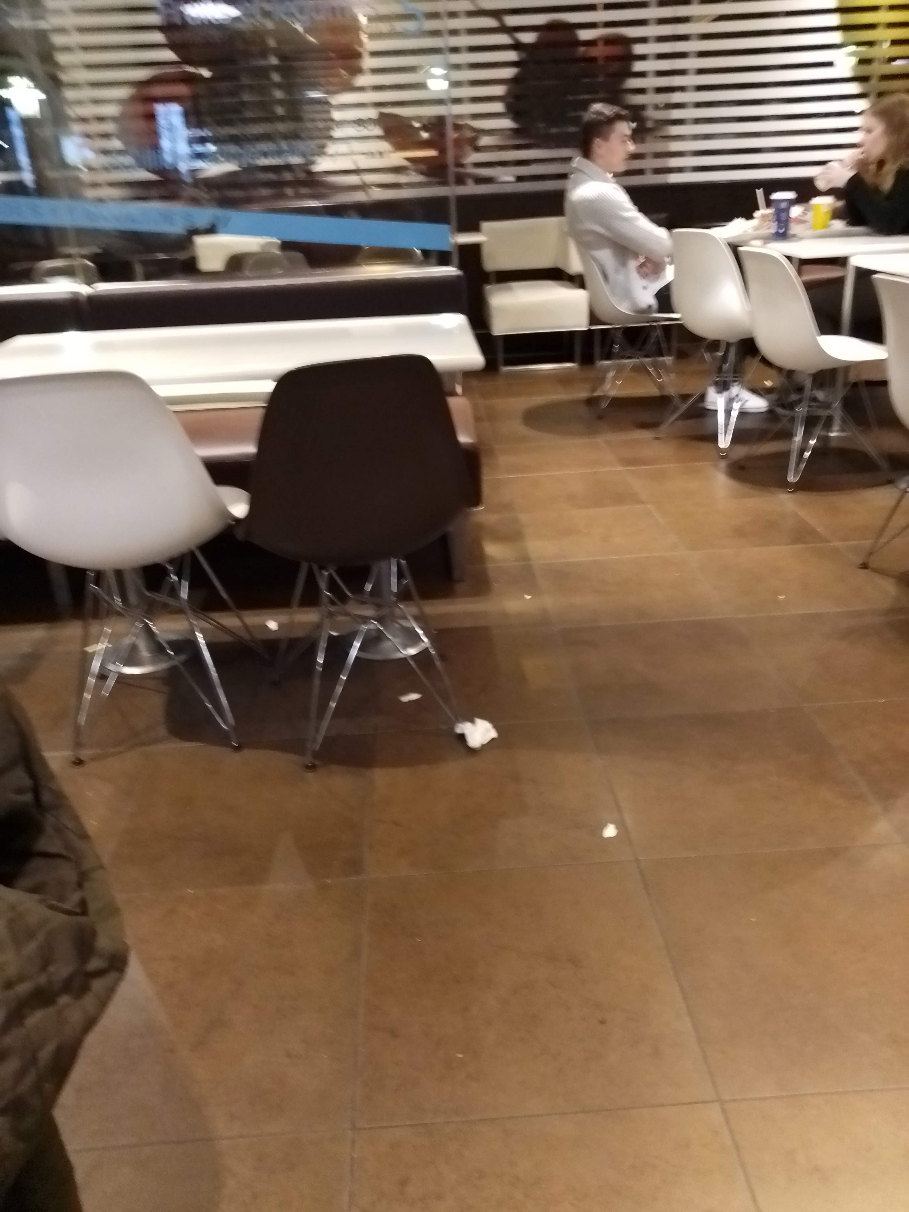 20 mn d'attente pour préparer 2 boissons. Service cool (pour les serveurs) Pour s'installer, on a le choix entre pleins de tables grasses, certaines avec une frite qui traine ... Apparemment, le ménage est à la cool aussi. Aucun risque de burn out pour les employés. Je recommande, pas pour déjeuner, mais pour taffer. 😂