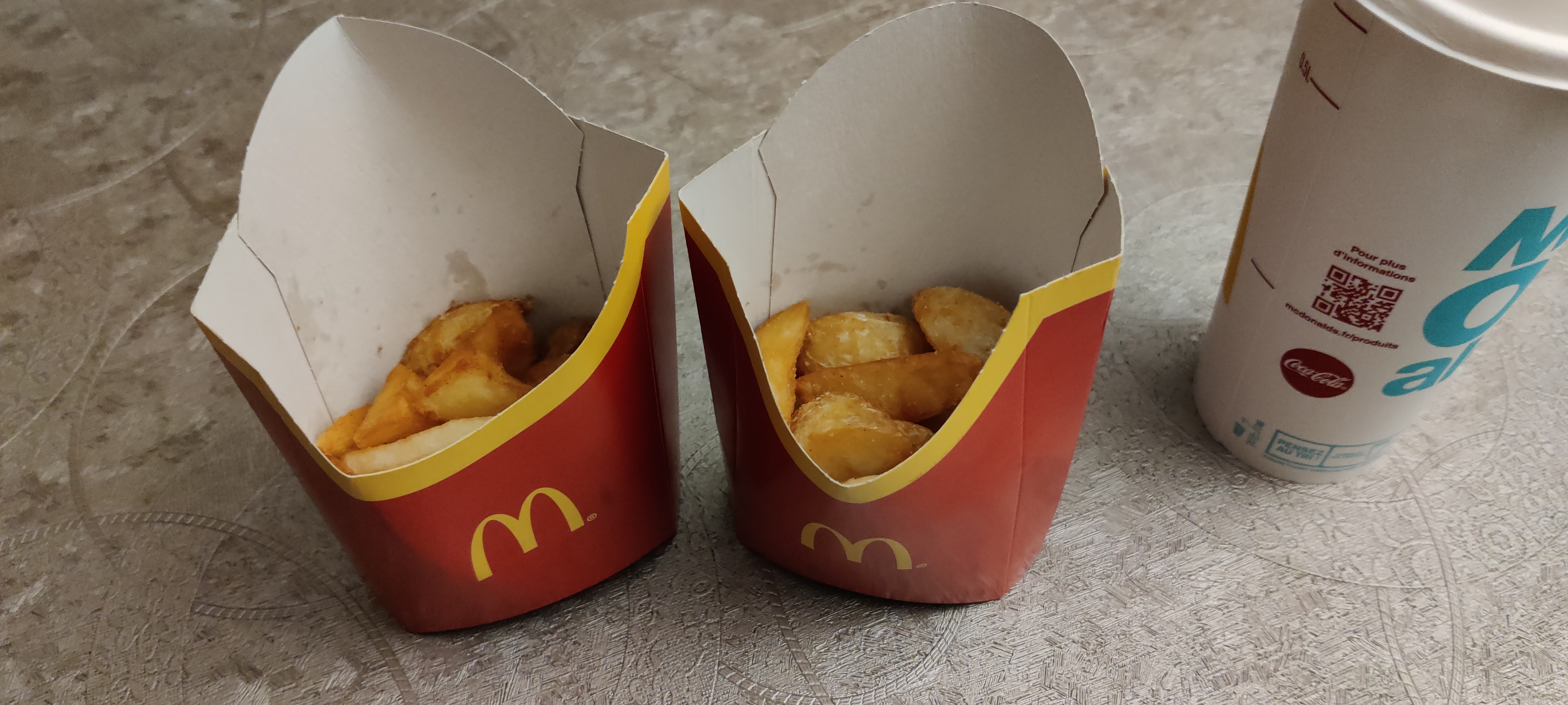 Boisons que de l’eau, frites froides et pourtant personnes dans le Macdo trompe sur 2 boisons et on te dit que la machine déconne….