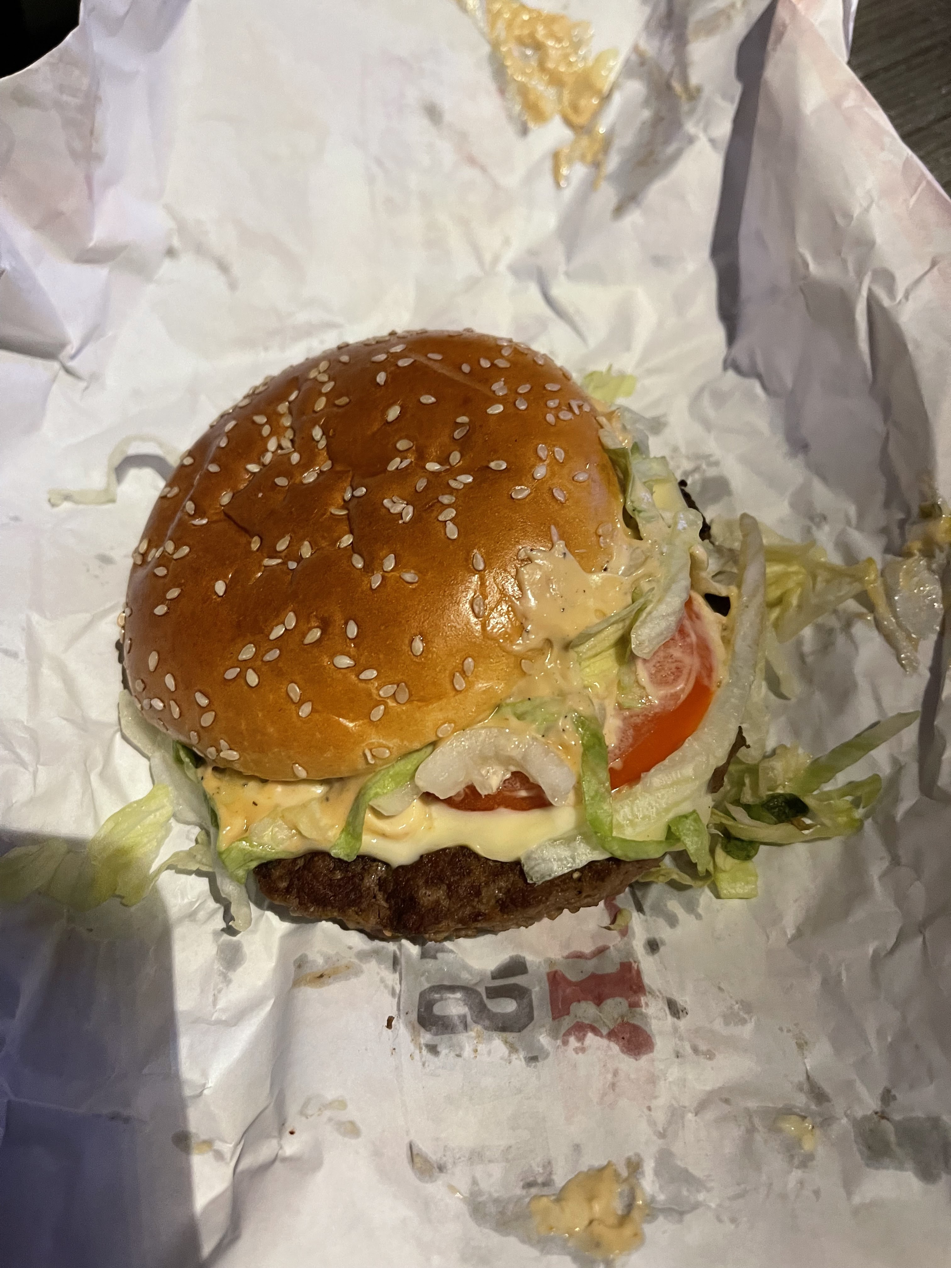 Nous venons de récupérer notre commande que dire ….. la photo parle d elle même je pense qu’ils ont fait un foot avec notre burger avant de nous le donner