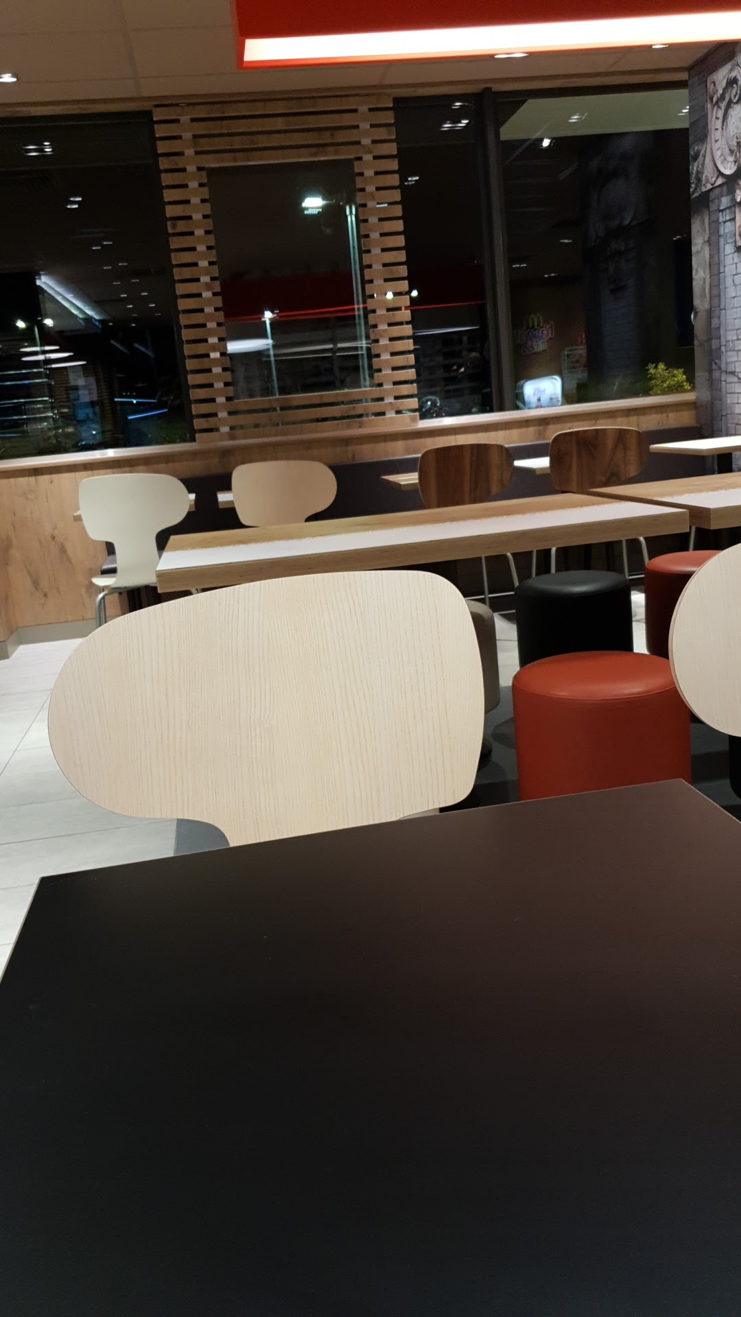 Mcdo trop petit dc manque de place. De plus lorsqu on est assis à proximité de l entrée les vas et vient des clients font courant d air, c’est désagréable Le gros point négatif : après 21h impossible de manger à l’intérieur et encore moins de commander. Lamentable !!!
