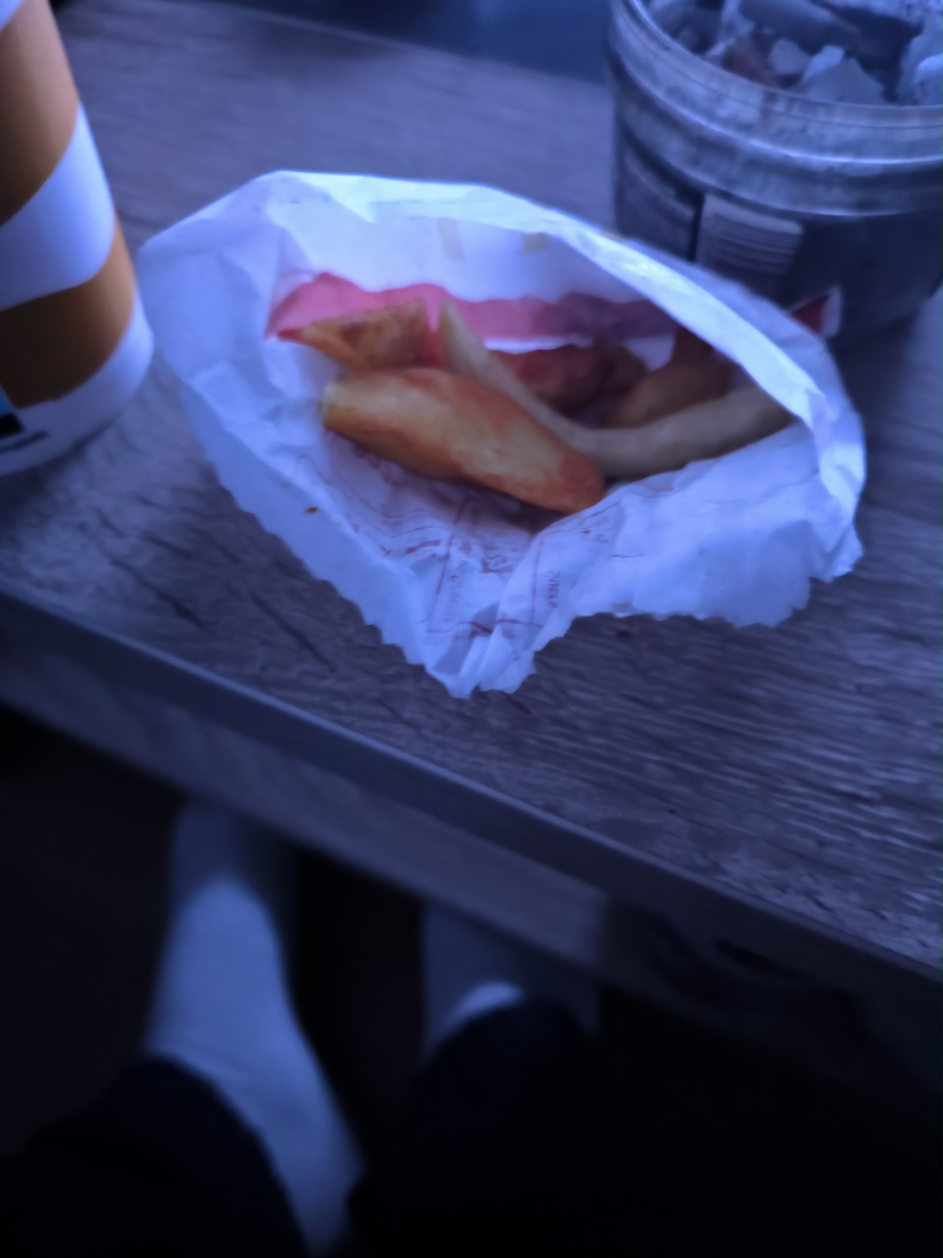 Le point positif c'est que depuis qu'il y a Burger King à côté il y a plus trop d'attente, mais quand les frites sont servi ( comme sur la photo joint ) faut pas s'étonner que les derniers fidèles vont chez la concurrence... PS: Elles n'ont pas été renversées dans le sac! ( Ça c'est un autre soucis )