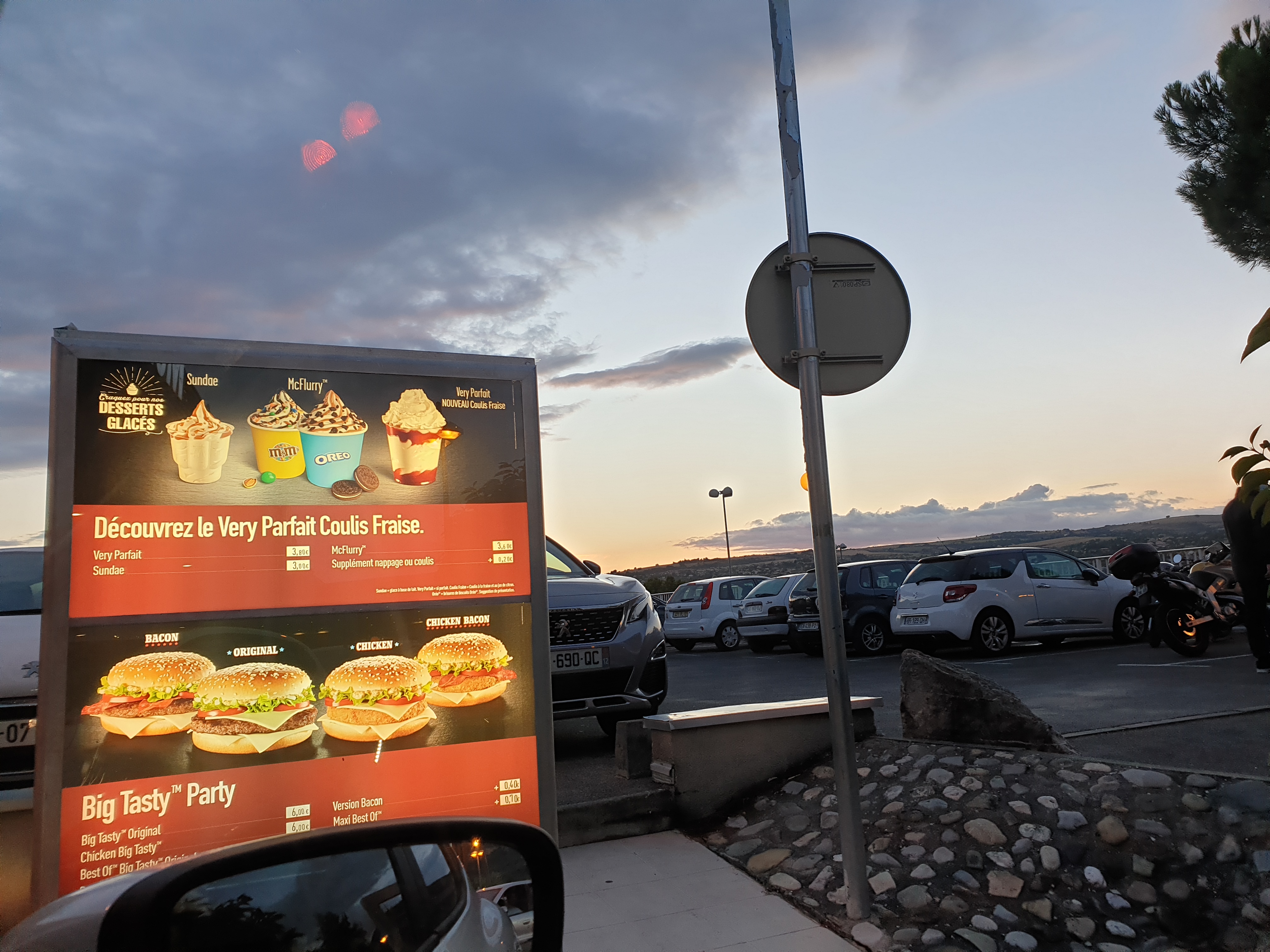 Établissement bien situé, idéal pour faire une étape sur la route des vacances, même si nous ne sommes pas forcément adeptes de ce genre de nourriture rapide, il faut bien avouer que ça dépanne bien de temps en temps...tout en faisant plaisir aux enfants ! Nous avons donc utilisé l'application dédiée pour nous faire gagner du temps (la fameuse Click and Collect qui, pour une fois, n'a pas beugué) mais c'était sans compter sur la file interminable de voitures, en train d'attendre désespérément son tour au Drive, en ce dimanche soir... Malgré tout ce monde aglutiné au même endroit (où l'on aurait pû penser que tout Millau s'était donné rendez-vous !?) l'attente fut bien gérée : un employé, masqué et muni d'une tablette tactile, est venu prendre les commandes de chaque véhicule, afin de les envoyer en cuisine, et ainsi faire avancer le schmilblick . Notre temps d'attente fut donc considérablement raccourci. L'employée qui a préparé nos menus nous a confirmé que le dimanche était une journée particulièrement chargée... Surtout au soir, où ce genre de files d'attente étaient très fréquentes. Bref, il n'y a eut aucun oubli, le service a été agréable et poli... On voyait les employés courir partout et essayer de faire le maximum pour servir au mieux tous les clients du Drive dont nous faisions partie. Pour tout cela nous n'avons rien à redire, ensemble correct et satisfaisant.