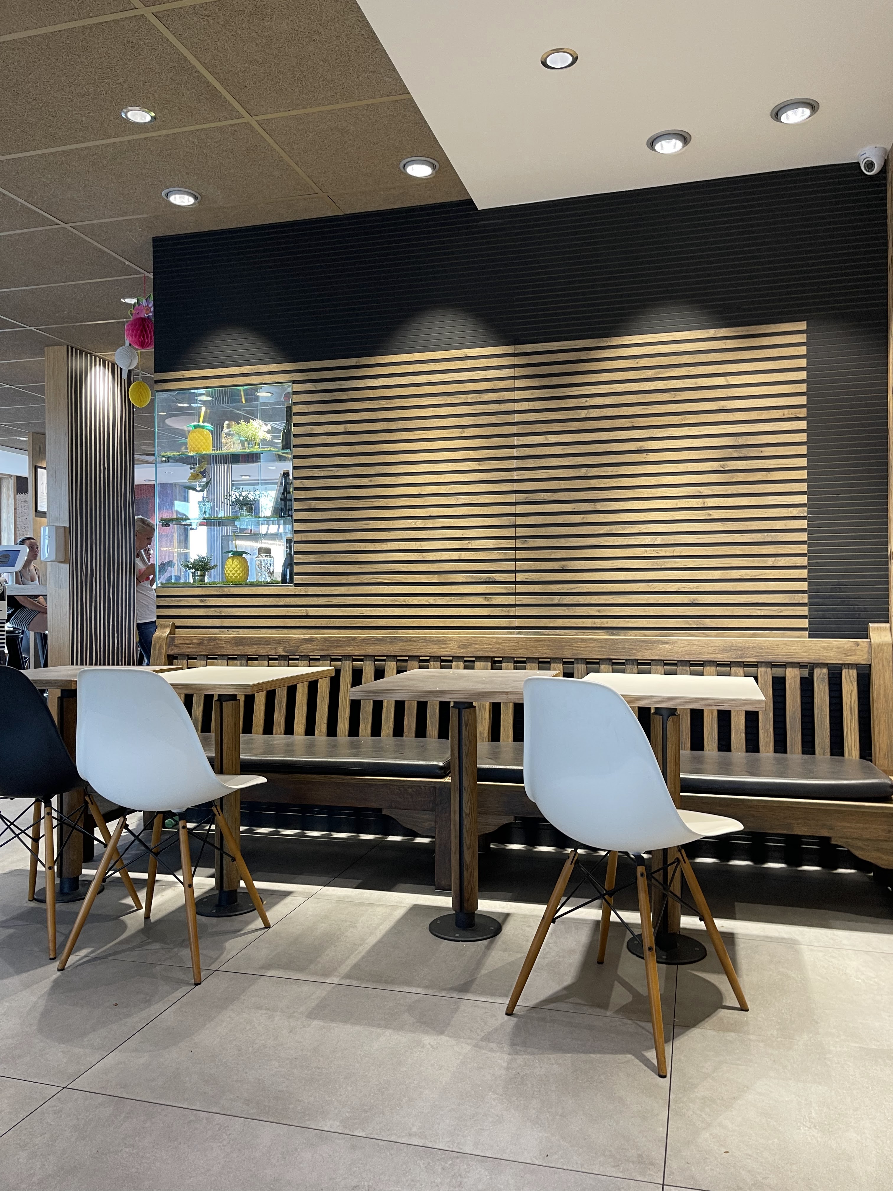 Food is as expected and the interior decor is McD all the way. The service lacks value, not by the doing of the staff, but due to the operator (owner) being dirt cheap. Mr Operator, you own many franchise and your revenue is very substantial. Pay your staff better and hire more staff.. do not be a scrooge. You bring down the brand by your cheap attitude. La nourriture est comme prévu et la décoration intérieure est entièrement McD. Le service manque de valeur, non pas à cause du personnel, mais à cause du fait que l'opérateur (propriétaire) est très radin. Monsieur Opérateur, vous possédez de nombreuses franchises et vos revenus sont très conséquents. Payez mieux votre personnel et embauchez plus de personnel… ne soyez pas un scrooge. Vous faites tomber la valeur de la marque par votre attitude bon marché.