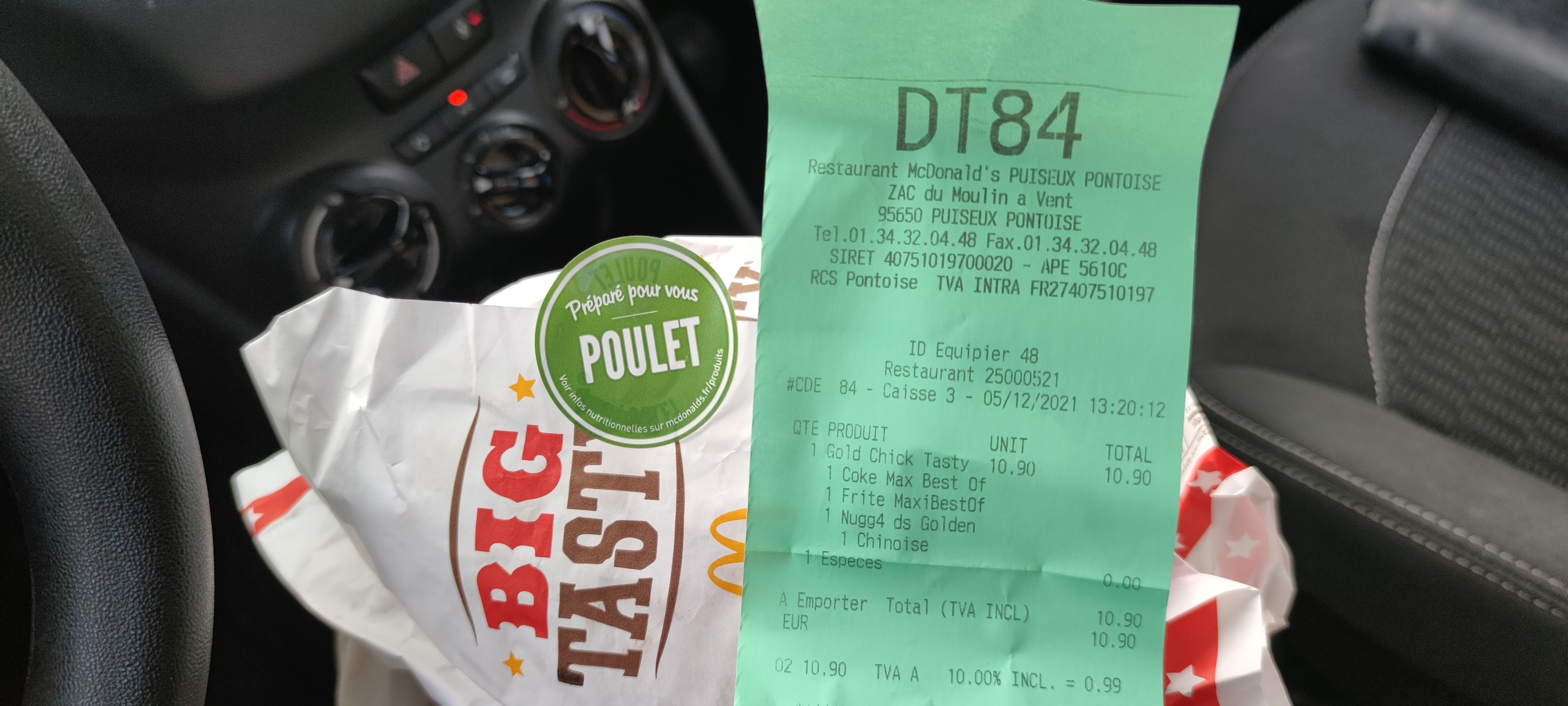 De pire en pire, 55 minutes au drive ce midi. Je voulais juste faire plaisir à ma fille. Il y à toujours quelque chose qui ne va pas ! Croque mac do avec pain à l envers et limite pas cuit, bref.